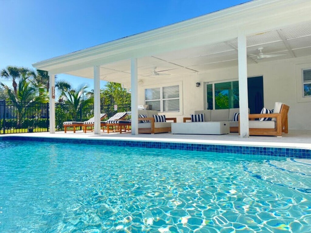Courtesy of Berkshire Hathaway Florida Rea Posted by Andrew Coleman with EXP Realty . Discover refined coastal luxury in this fully furnished, upgraded 4 bedroom, 2 bathroom residence in the heart of Jupiter. Set on a private sunny fully fenced corner lot situated along prestigious W Riverside Drive, it is ideal for anyone looking to embrace the premier Jupiter lifestyle. Relax by your heated saltwater pool with shell white limestone pool deck, unwind under the covered lanai with a fire pit, or entertain at the custom tiki bar featuring an outdoor TV. This prime location--just minutes from pristine beaches, the iconic Jupiter Inlet and Lighthouse, and vibrant Love Street with acclaimed restaurants and upscale shops--defines luxury living at its finest!