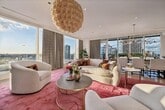 This remarkable 4-bedroom plus office,4.1-bath corner residence is perfectly positioned on the 22nd floor of one of the Gold Coast's most prestigious addresses,capturing breathtaking lake and sunset city views. Rarely available,the expansive layout is bathed in natural light,with bespoke black and white marble mosaic tile setting a tone of refined sophistication from the moment you are welcomed by the foyer. With wide-plank white oak floors leading you through abundant storage within the entry halls,distinctive touches abound,such as the frontmost powder room adorned with hand-painted Paul Montgomery wallpaper and a collection of thirty carefully curated pendant lights from Design within Reach,Rejuvenation,Lightology,and 1st Dibs including antiques from Italy and France. The chef's kitchen is a true showpiece,appointed with O'Brien Harris custom solid walnut kitchen cabinetry and Buster + Punch brass hardware,Wolf appliances-including dual ovens-and a striking Calacatta marble island with an integrated stovetop and pop-up hood. Practicality meets luxury with two 30" Designer Over-and-Under Sub-Zero Legacy Model Refrigerator/Freezers and a plentiful walk-in pantry. While cooking dinner at sunset,one looks out at floor-to-ceiling windows framing sweeping panoramas across the open living and dining areas. The perfect setting for relaxation and entertaining is enhanced by custom drapery throughout,crafted with designer fabrics including Dedar Milano silks and Jean-Paul Gaultier for Lelievre. Entering each living space through solid maple double doors surrounded by custom-carved millwork,the family room and study extend the home's versatility while each bedroom boasts its own full ensuite with radiant heated floors,ensuring privacy and comfort. Custom floating walnut vanities are topped with marble and accompanied by bespoke tile and hardware finishes. The primary suite occupies its own wing,complete with terrace access,a custom walk-in dressing room with storage for all seasons,and a spa-inspired bath featuring an extra large soaking tub with lake views. Additional conveniences include Control4 integration for commanding lights,shades,curtains,TVs,and the state-of-the-art sound system with invisible speakers throughout the home and on the deck,a full laundry room with new Samsung SmartThings washer & dryer and sink,and two assigned parking spaces. Residents enjoy full-service living with five-star amenities and white-glove service: 24-hour door staff,optional valet,an indoor pool and spa,a two-story fitness center,golf simulator,guest suites,and beautifully designed entertaining spaces including a catering kitchen,bar,and expansive hosting terrace. Just moments from Chicago's celebrated restaurants,cultural destinations,parks,and Lake Michigan,this residence offers a rare combination of scale,sophistication,and service creating an unparalleled opportunity for luxury city living. MLS# MRD12551242 Based on information submitted to the MLS GRID as of [see last changed date above]. All data is obtained from various sources and may not have been verified by broker or MLS GRID. Supplied Open House Information is subject to change without notice. All information should be independently reviewed and verified for accuracy. Properties may or may not be listed by the office/agent presenting the information. Some IDX listings have been excluded from this website. Prices displayed on all Sold listings are the Last Known Listing Price and may not be the actual selling price.
