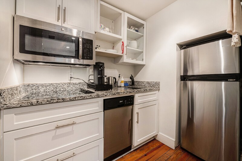 Property Id: 1566610 Available starting 11/1/25 for minimum 30-day stays Discover your ideal Charleston getaway! This charming 1-bedroom, 1-bathroom apartment blends historic charm with modern amenities, offering a cozy retreat in the heart of the city. Perfect for extended stays, you'll be surrounded by Charleston's vibrant culture, local cuisine, and nearby attractions. Layout: Downstairs: Living area with Smart TV, sofa, and antique dining table for two Kitchen with a full-size refrigerator, Nespresso, dishwasher, microwave, and 4-burner electric stove Upstairs: Bedroom with queen bed, Smart TV, ensuite bathroom with shower, and laundry closet with washer/dryer Important Notes: The bedroom is on the second floor, so guests must be able to climb stairs There is NO PARKING INCLUDED; guests must arrange off-site parking if needed. Please consider this before any inquiries.
