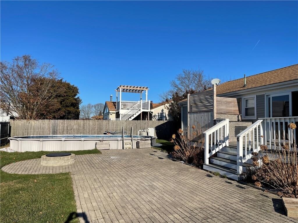 Located on a quiet cul-de-sac just off West Main Rd. A modern and updated 3 bedroom home with an updated kitchen,2 large bedrooms with a large primary bedroom and a 1/2 bathroom on suite. This adorable home has an attached 1 car garage,working fire place in the living area,fantastic outdoor decks with a custom outdoor kitchen,and a sunken above ground pool. There are also 3 other rooms in the partially finished basement with laundry,and a huge second living space . Annual Lease,Tenants pay all utilities: oil heat and hot water,town water,and electricity. MLS ID 1408772