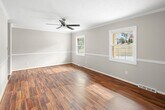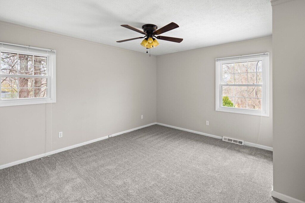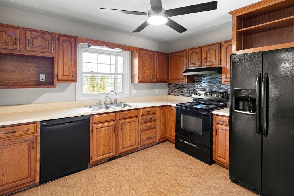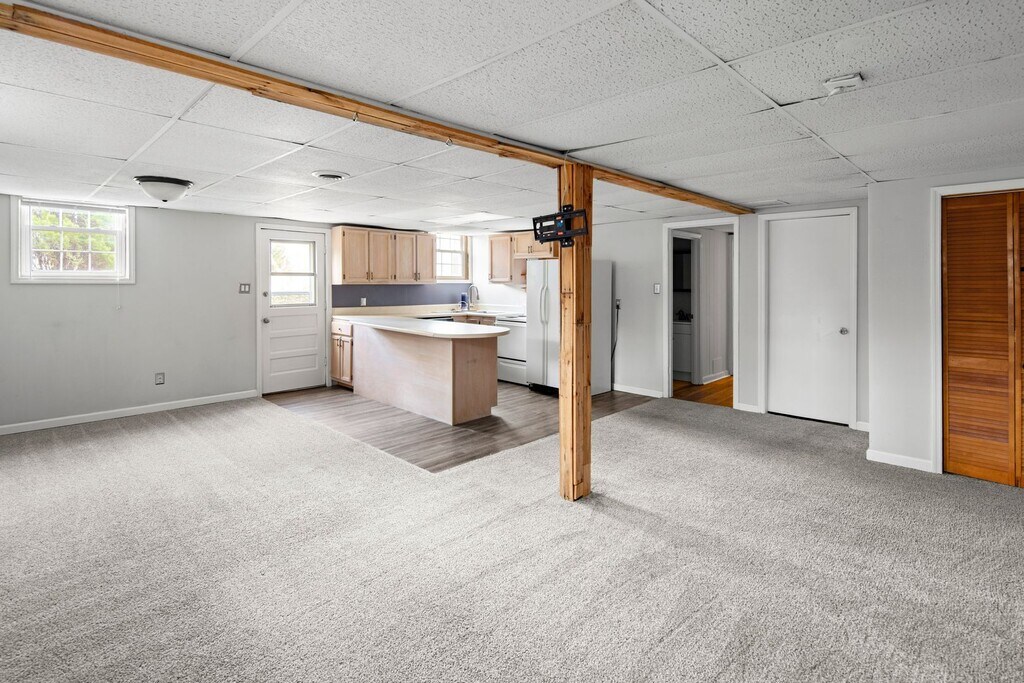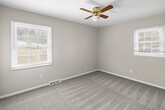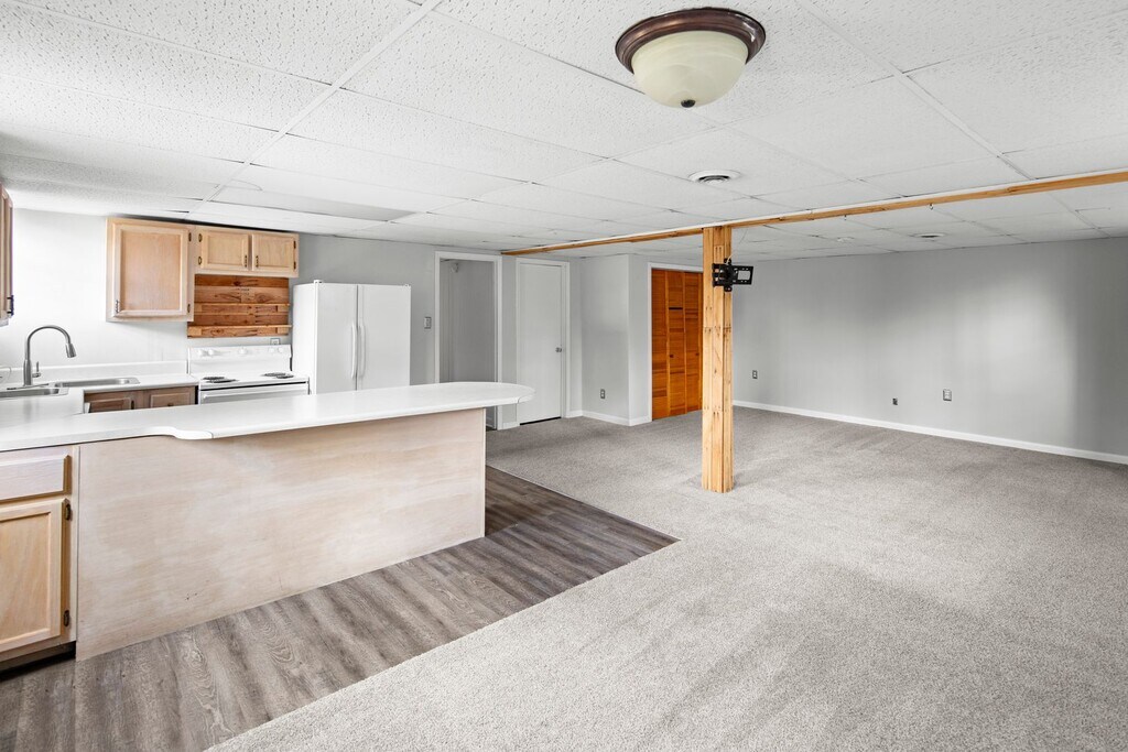 Refreshed with newly carpeted bedrooms and fresh paint. Quiet cul-de-sac location. Plenty of space on two levels. A traditional floor plan on the main level includes a spacious formal dining room off of the entry foyer. The open living room and kitchen feature a wood burning fireplace and access to the back deck and backyard. The kitchen has tile floors, and appliances include the dishwasher, electric range, and refrigerator. Three bedrooms and two full bathrooms are upstairs, including the primary bedroom with an en suite bathroom. Each bathroom includes a combination bathtub/ shower. Downstairs offers so much finished space including storage, a second full kitchen, and a second open living room with plush carpet. Also on the basement level are the laundry room with washer/ dryer hookups and a bathroom with a stall shower. The yard is around 0.8 acres including the fenced backyard and side yard. The shed is available for tenant use. One car attached garage and off-street parking. Flooring is tile, LVP, and carpet. Tenant responsible for all utilities, including natural gas, electricity, and water/sewer as well as lawn mowing. No cosigners permitted. No smoking. One small pet is negotiable.