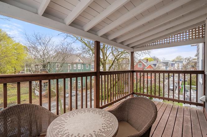 Located two streets over from the gorgeous Arnold Arboretum, this penthouse home offers a thoughtful floor plan and lovely treetop views. Through the newly refreshed common vestibule and period staircase, you are greeted by the airy foyer which opens to the living room and large dining room. The eat-in kitchen offers gas cooking and access to the private treetop porch overlooking the shared backyard, plus a laundry closet with a full-sized washer and dryer. The expansive primary bedroom showcases a bay window and decorative mantle, plus an en-suite office with storage. There is also a hall bathroom with a tub. Located just a stone's throw from all of the wonderful restaurants & shops along South Street, and less than a mile to Jamaica Pond and Brigham & Women's Faulkner Hospital. Living here offers easy access to the Colleges of the Fenway, Harvard Medical/Public Health/Dental Schools, and Longwood Medical Area via the 39 Bus. Right between the Green Street and Forest Hills T stops.