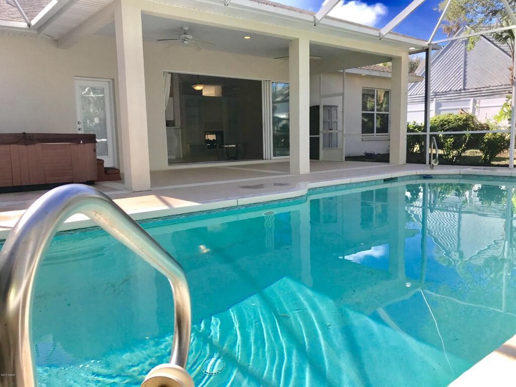 Welcome to this charming home in Ponce Inlet, FL. This beautiful pool home is two blocks from the beach and less than a mile from the Ponce Inlet Lighthouse and Jetty. Nestled in a serene neighborhood, this property features a spacious layout, an open floor plan, high ceilings, a double-sided fireplace, built-in bookcases, and a screened-in pool. It has three bedrooms and two bathrooms. The inviting living area is appropriate for entertaining, and the kitchen boasts modern appliances and ample storage. Recently painted with new tile flooring and overhead fans throughout. Large 2 two-car garage with lots of shelving. There is lighting outside around the entire home. New roof in 2023. New air conditioner in 2022. Enjoy outdoor living in your screened-in pool. No Utilities included or Lawn Care and Pool Care. Pet-friendly. We recommend that you review this walk-through of the property to see everything included: .