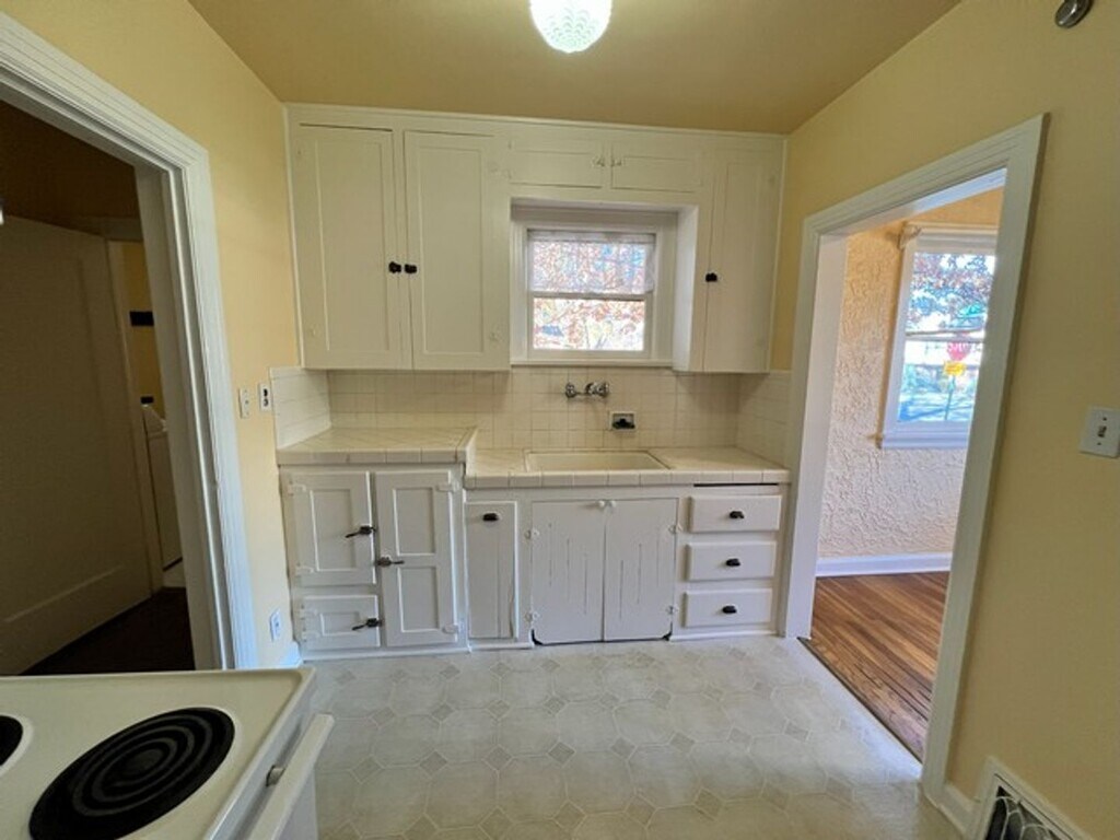 This two bedroom has recently been refreshed with new paint. Wood plank flooring in the living areas, carpet in bedrooms with tile in the bathroom. Living room with decorative fireplace. Kitchen with electric stove and fridge. Hall bath and two bedrooms. Laundry area with washer and dryer. Basement with unfinished area (not for living space) with room for storage. Small turf area in the backyard. Near mid-town, shopping, restaurants, minutes to down town entertainment and close to bus line. Tenants responsible for electric, garbage, sewer and oil for the heating. No co-signers considered. 1 pet under 30lbs on approval with additional deposit. This is a one year lease. All properties require an application process. Each person over the age of 18 must complete an application. The application fee is $35 per adult. Applications include running credit (650 or better), employment/income verification, and rental references. NV. BS.0143495, NV. PM.0164783