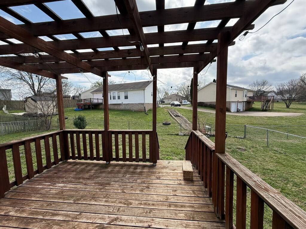 Charming 3-bedroom, 2-bath ranch home with 1,128 sq ft of comfortable living space located just minutes from Fort Campbell. This home features no carpet and new windows throughout for great natural light. The primary suite offers a walk-in closet and a large, tiled shower. The kitchen includes stainless steel appliances, ready for your culinary touch. Relax on the covered front porch or entertain on the pergola-covered back deck overlooking the fully fenced backyard