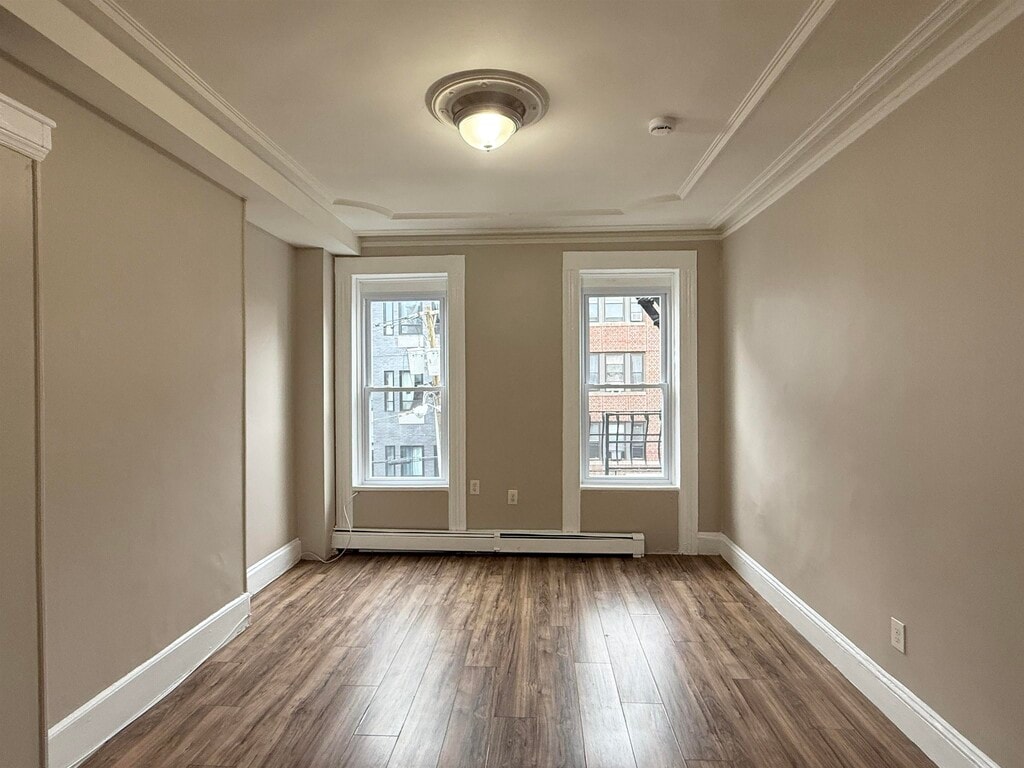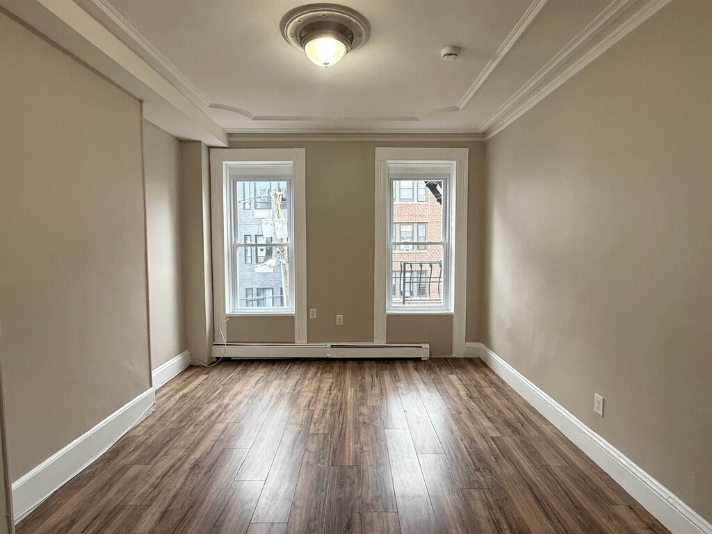 Cozy 1-bedroom plus den apartment ideally located just a short walk from the Journal Square PATH station, perfect for commuters. This bright and inviting home features hardwood floors, large sun-filled windows, and a modern kitchen with stainless steel appliances and wood cabinetry. The building offers a convenient coin-operated laundry room in the basement. Available for immediate move-in!