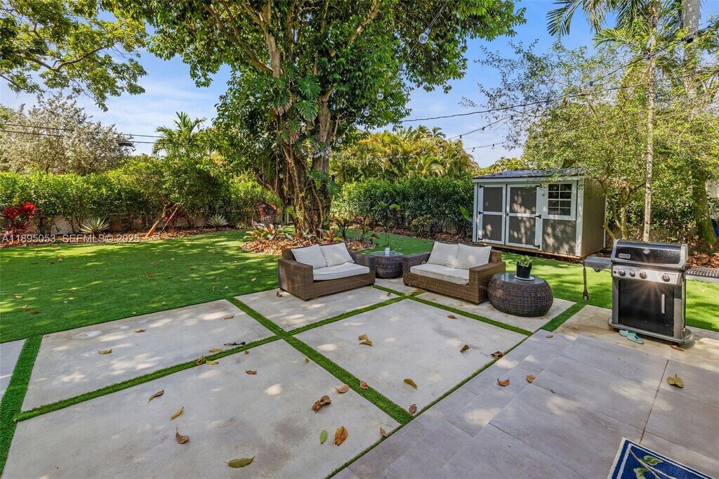 Step into Casa Verde — a beautifully renovated 1939 residence nestled in one of Miami Shores' most private & peaceful pockets. A short distance to Downtown Miami Shores, this 3 BR, 2 bath home blends timeless character w/ modern updates & exceptional outdoor living. Situated on spacious 9,300 SF corner lot, featuring lush landscaping, expansive backyard w/ synthetic turf, & multiple outdoor entertaining areas—perfect for enjoying S. Florida living year-round. Home equipped w/ EV charing station & mosquito misting system. Located in a truly special community known for its tree-lined streets, family-friendly amenities, and small-town charm, residents enjoy access to the Community Center, Aquatic Center, Tennis, Country Club, Library, & year-round activities. A wonderful place to call home.