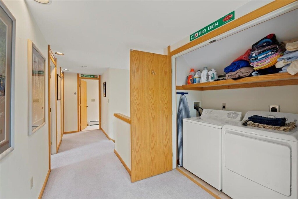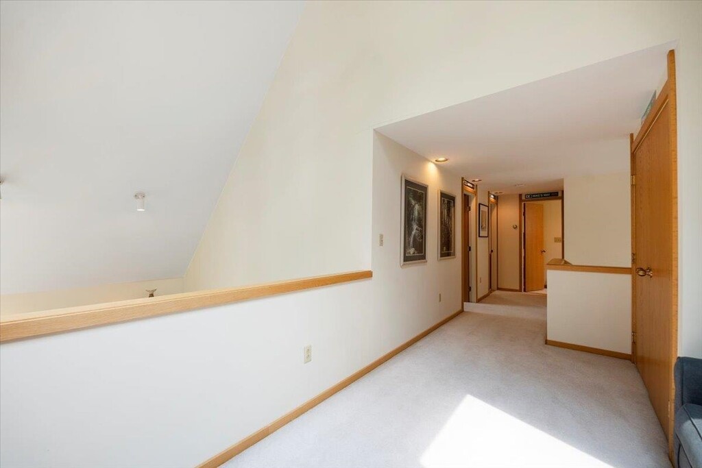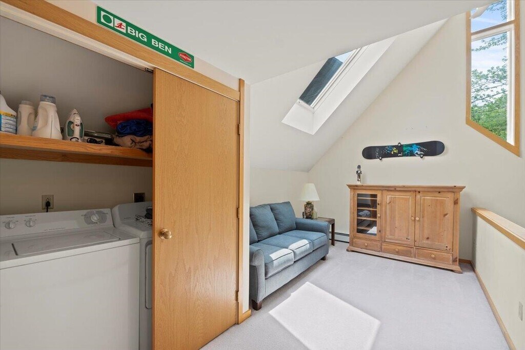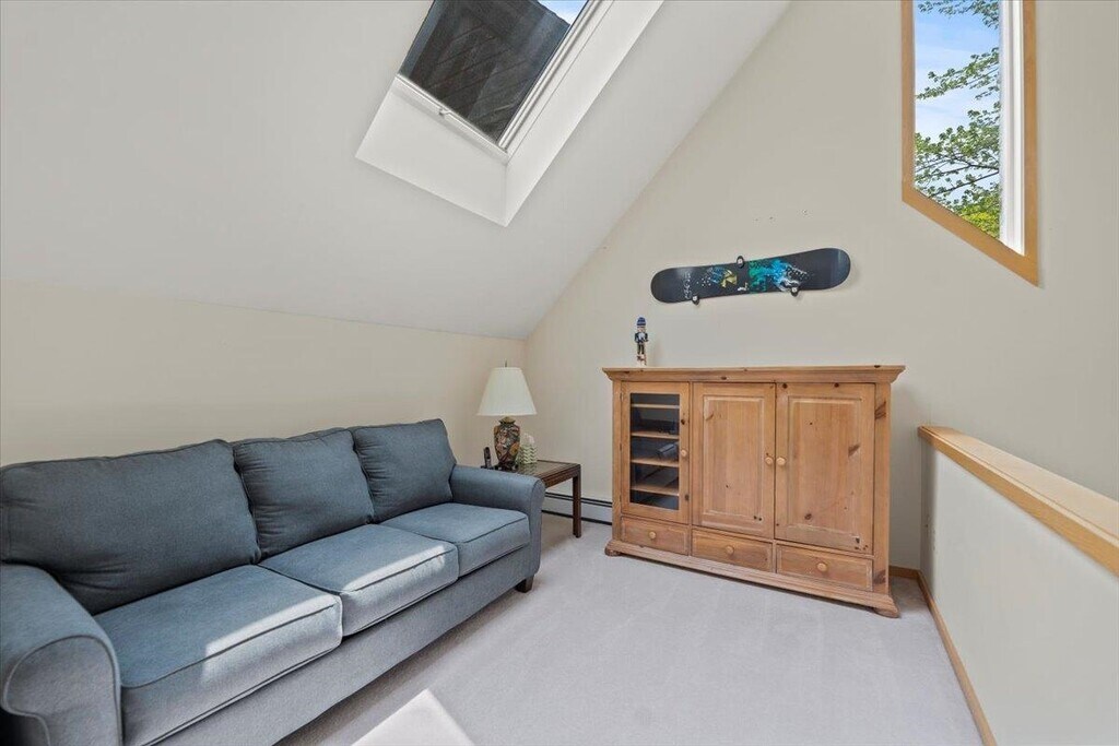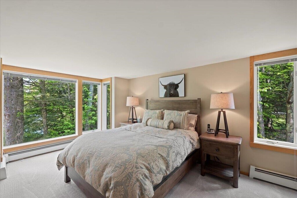 Intervale Rental. Available for the winter 25-26 winter season. Also available for summer or fall monthly rental. Entry mud room for boot storage. Main floor has wood burning fire place, and the deck off the living room is a overlooks the pond. Main floor has primary suite. Two bedrooms plus a sleeping loft on the upper floor. One bedroom has an en suite bathroom, and a hallway full bathroom serves the other sleeping spaces. The sleeping loft could be an office, studio, or game room. Shuttle bus to Stratton base area on winter weekends and holidays. MLS# 5000771