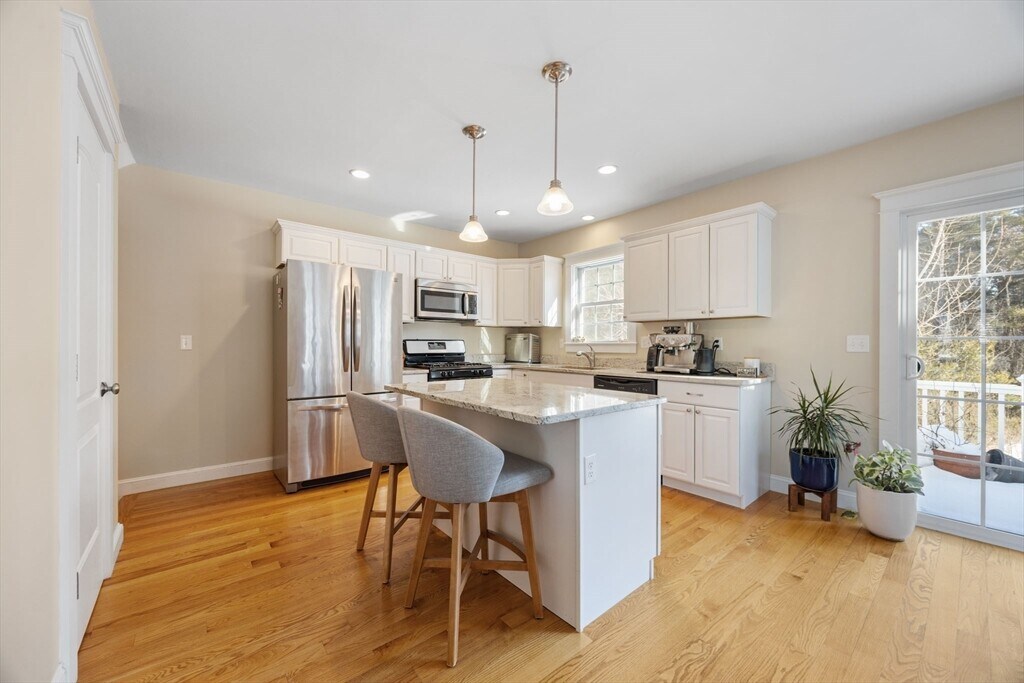 Beautiful end-unit townhouse in Canton’s Turtle Brook Village! This professionally managed community offers a neighborhood feel without the hassle of mowing your lawn or shoveling snow. Spread out over two levels of living area,this 2016-built home features countless updates. The main living level is highlighted by hardwood floors,a gas fireplace,an open concept living room/dining room/kitchen lined with full-size windows offering lots of natural light,a half bath,and a sliding glass door connected to your private outdoor deck,complete with scenic forest views. Head upstairs and you'll find two generous-sized bedrooms,both featuring vaulted ceilings,large closets,and en-suite bathrooms. The unfinished walkout basement is perfect for storage or a gym. Central air,in-unit laundry,and two parking spots round out the amenities. Convenient location for highway access or commuter rail into Boston/Providence. Available 4/1. First month's rent and security deposit required. MLS# 73481838