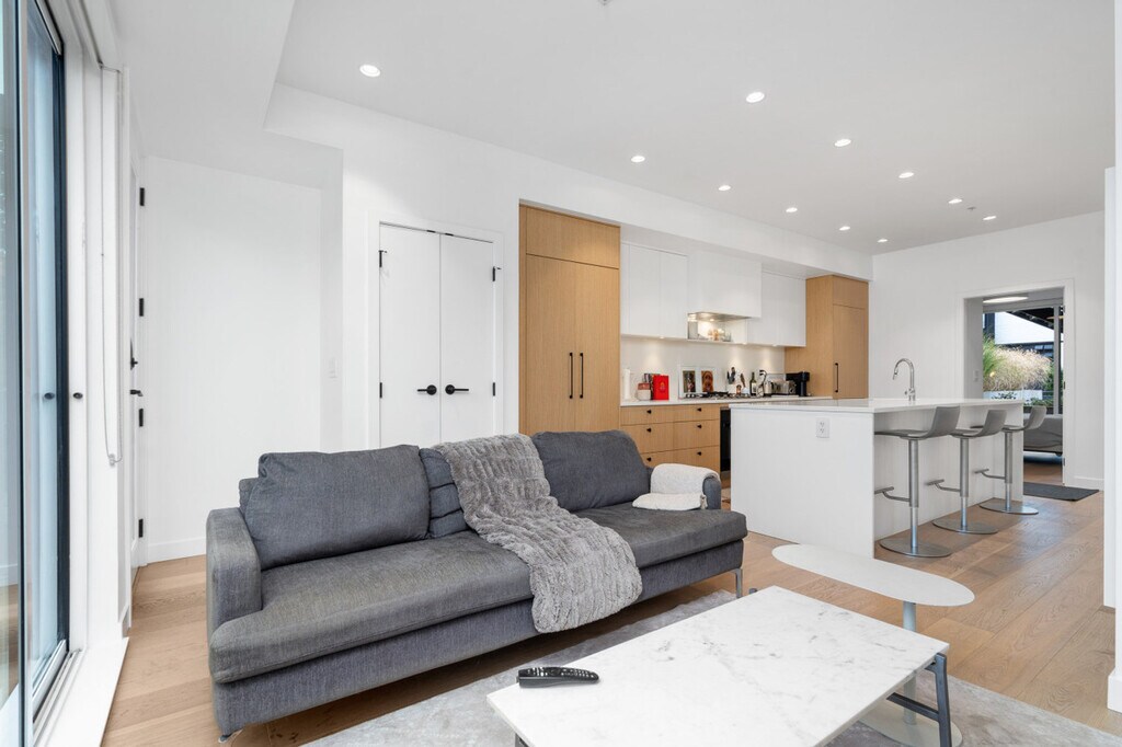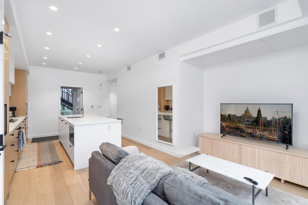 Experience a peaceful retreat and feel at home in this modern 1-bedroom townhome nestled in Vancouver’s charming Cambie Village. Designed with thoughtful touches and contemporary style, this bright home features a spacious layout, a fully equipped kitchen with high-end appliances and a large island, a full bathroom with a tub and shower combo, and an in-suite washer and dryer for convenience. Enjoy the open-concept living area with a Smart TV and air conditioning and heating for year-round comfort. Enjoy a private outdoor patio with comfortable seating. On-site parking and EV charging are available. Located in the quiet and sought-after Cambie/Riley Park area, this home offers a peaceful retreat while keeping you close to Vancouver’s best amenities. Stroll to nearby parks, cafes, and shops, or take a short drive to vibrant Main Street and Cambie Village for dining and entertainment. Downtown Vancouver is a 10-minute drive and YVR Airport is a 15-minute drive. Queen Elizabeth Park is a 2-minute drive or an 8-minute walk. The nearest grocery and pharmacy are a 3-minute drive, and the nearest transit stop is one block away. Excellent transit access makes it easy to reach downtown, UBC, and other city attractions. No smoking and no parties or events are allowed. [SI]