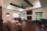 Beautiful waterfront views! First floor primary. A spacious foyer and formal dining area or flex space for an extra sitting room. The living room has a tray ceiling and wood beams,open to the kitchen with SS appliances,gas cooking,granite countertops and subway tile backsplash. Down the hall is the half bath and laundry room. The first floor primary bedroom features a walk-in closet and private ensuite with a separate soaking tub and walk-in shower. There are 3 spacious bedrooms and a full bathroom upstairs. Out back you can relax on the screen porch,overlooking the lake.