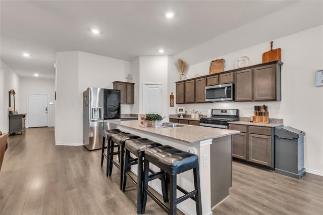 Beautiful 4-bedroom, 2-bath D.R. Horton home located in the highly desirable Winchester Crossing community in Princeton, Texas. This well-maintained home offers a modern open-concept floor plan, luxury vinyl plank flooring throughout, and stylish finishes designed for comfortable everyday living. As you enter the home, you're welcomed by a spacious foyer with decorative lighting that leads into the main living area. The open kitchen, living, and dining space creates the perfect environment for entertaining and family gatherings. The gourmet kitchen features granite countertops, stainless steel appliances, decorative backsplash, and a large oversized island with seating, making it the centerpiece of the home. The private primary suite is located at the back of the home, offering added privacy and a relaxing retreat. Enjoy outdoor living on the extended covered patio, perfect for morning coffee, evening relaxation, or weekend cookouts in your private backyard. This home is less than 2 miles from the new Walmart, shopping centers, restaurants, and everyday conveniences, making errands quick and easy. Residents of Winchester Crossing enjoy fantastic community amenities including a pool, playground, and scenic lake — all within walking distance. Located in one of the fastest-growing areas of North Texas, this home offers the perfect opportunity to enjoy suburban living with convenient access to nearby amenities. Schedule your showing today and see everything this beautiful home has to offer.