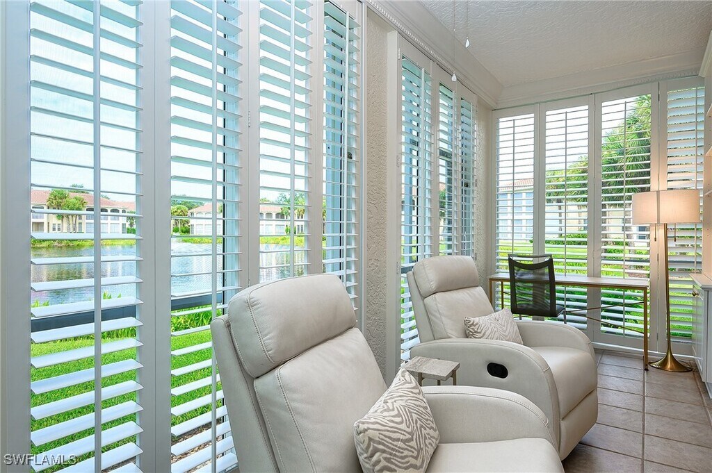 LUXURIOUS COACH HOME,where you can enjoy one of the best locations in L'AMBIANCE in PELICAN BAY as an annual rental or seasonal. This EXCEPTIONAL,GORGEOUS home is first floor end unit,and so light,bright and airy and with a LONG,LAKE VIEW and water fountain. The enclosed Lanai has plantation shutters and can be opened to enjoy a breeze,or closed for additional living space. This home has been beautifully UPDATED THROUGHOUT and Turnkey Furnished in Interior designer style. This home is all perfection throughout. Beautiful eat-in kitchen. Both bedrooms have King size bed and en suite bathroom,master bathroom that has separate shower and tub and dual sinks. Laundry room has washer,dryer,cupboards and tub. One car garage with additional parking for cars on the driveway. Pelican Bay is a much sought after community offering many amenities including private BEACH ACCESS with tram service,two beachfront restaurants,18 Har Tru tennis courts,pickleball,fitness center,kayaking,canoeing and walking paths. Close to Waterside shops,Artis-Naples,Mercato and Ritz Carlton beach resort. Enjoy an exceptional time in this luxurious home. Season rentals of 4 months or more,at higher rate,preferred.