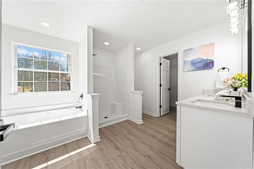 Great location! A spacious 4-bedroom,2.5-bathroom home in the heart of Lawrenceville. Whole house has been renovated newly and upgraded thoroughly! NEW laminate flooring thru out all interior areas,NEW painting,NEW kitchen cabinet with gorgeous quartz countertop,NEW appliances,NEW lighting fixtures,NEW HVAC,and MORE! This inviting property features an open floor plan with a modern upgraded kitchen,a cozy living area,and large windows that fill the space with natural light. The luxurious master suite boasts a private en-suite upgraded bath,walk-in closet,while the three additional bedrooms offer versatility for family,guests,or an office. Oversize deck faces to beautiful view of lake and woods. Enjoy a peaceful backyard,perfect for outdoor relaxation,and a convenient garage. Located just minutes from shopping,dining,and major highways,this home offers both comfort and convenience. Must see!