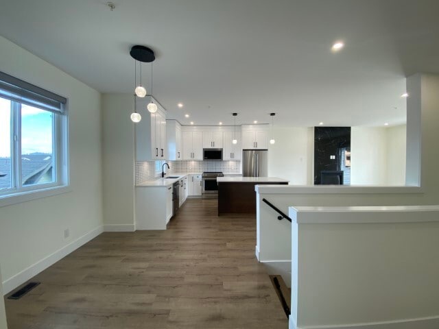 One year old upper unit located in Nanaimo's south end on a corner lot. This modern, bright and open concept living area offers a gas fireplace and large deck off the living room. Type: Upper Suite Address: 900 Monga Rd., Nanaimo, BC V9R 0K9 Available: February 1st Bedrooms: 3 Bathrooms: 2 Pets: Considered Approximate Square Footage: 1500 Appliances included: Fridge, stove, dishwasher, washer and dryer. Heating source: Heating source: Electric Heat pump Utilities: Utilities: Base water, sewer and garbage included. Fortis 80% split. BC Hydro 60% split. Parking: Driveway & Garage Special Amenities/Notes: Nearly new home, heat pump and hot water on demand --- Professionally managed by RE/MAX Rental Pros , 1-5140 Metral Drive, Nanaimo B.C. V9T 2K8 Applications required for each adult prior to viewing. Applications can be accessed on our website at or can be picked up from our office. All our rentals require a one-year lease commitment.