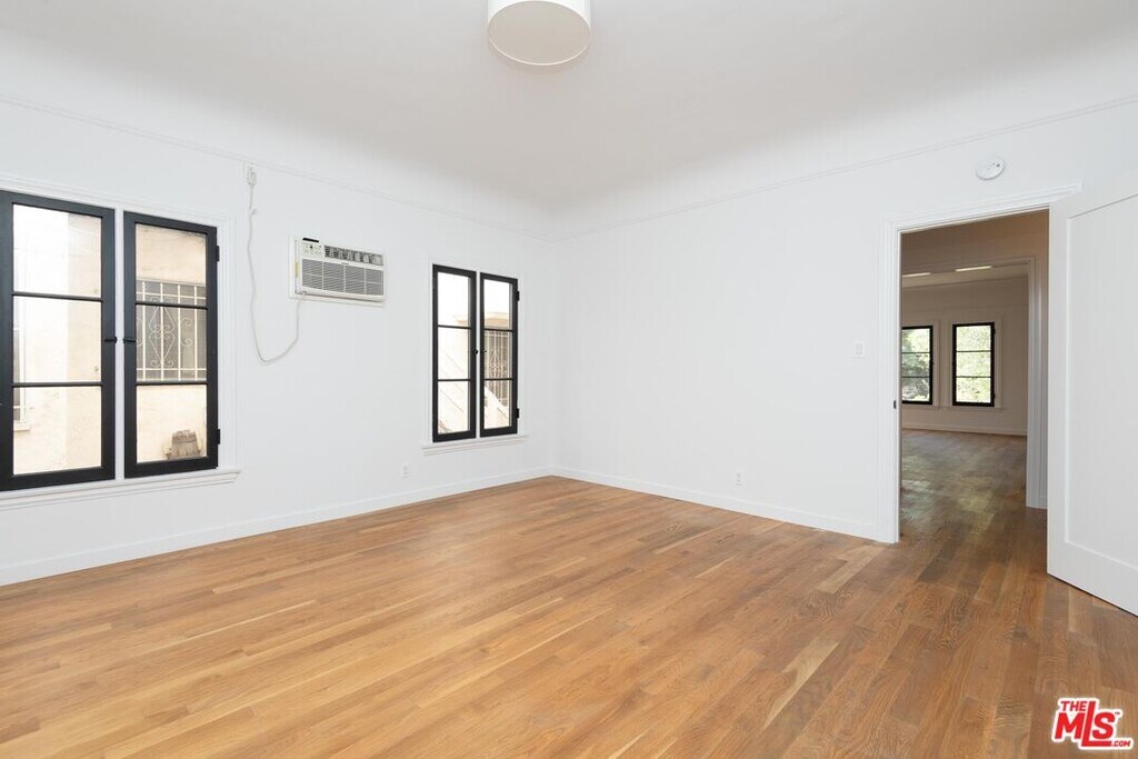 Beautiful designer-perfect and extra large 1 bedroom 1 bathroom in amazing 1920s Spanish Colonial building. All the character, charm, and style of the original architecture, with all new renovations. White oak hardwood floors throughout, new French-style wood casement windows, new kitchen with stainless steel appliances and eat-in dining area, new bathroom with large stall shower, mini split air conditioning and heating, full size washer-dryer in unit, decorative fireplace, and massive walk-in closet. Great location in Museum Square / Carthay Square, and walking distance to restaurants, coffee shops, and more. Small pets allowed at landlord discretion. Secured access building with intercom system. Street parking with permits, and reserved garage parking available in the neighborhood. A special apartment in a special building - please email or text for showings. MLS# 26651575