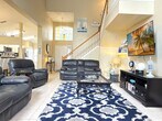 Welcome to your magical Disney getaway in Davenport, Florida! Escape to this private oasis, a spacious and inviting 3-bedroom home designed for unforgettable family vacations and group adventures. Perfectly situated in Davenport, you're just a magical 15-20 minute drive from the enchanting gates of Walt Disney World Resort, Epcot, Magic Kingdom, and Animal Kingdom, making park hopping a breeze! This charming villa comfortably sleeps 8 guests, offering ample space for everyone to relax and unwind after thrilling days at the parks. The bedroom layout includes a master bedroom with a luxurious king-size bed, a second bedroom with a cozy queen-size bed, and a third bedroom with another comfortable queen-size bed. Additionally, a versatile loft features a queen-size sofa bed, perfect for kids to play, teens to hang out, or adults to enjoy a quiet reading nook. The villa includes 2 full bathrooms and 1 toilet downstairs, and a fully equipped kitchen for preparing delicious meals and snacks. Optional services available for an extra fee include pool heat for a comfortably warm pool, a BBQ grill for outdoor dining, and essential baby equipment for your little ones. Ample on-site parking is provided. Located in the highly sought-after Highlands Reserve golf community, the home offers a safe, quiet environment surrounded by palm-lined streets and well-maintained landscapes. You'll be just minutes from grocery stores, restaurants, golf courses, and major Orlando attractions like Disney, Universal, and LEGOLAND. Enjoy the community amenities such as a public golf course, community pool, playground for children, and wide sidewalks perfect for morning walks or evening strolls. Quiet hours are between 10:00 PM and 6:00 AM. Check-in time is 4:00 PM, and check-out is before 10:00 AM. Early check-in and late check-out can be arranged for an additional fee if the home does not have another guest's departure or arrival scheduled. Smoking, vaping, and e-cigarettes are strictly prohibited in or near the property, with a minimum fine of $500 for violations. Pets are not permitted, and if discovered, there is an automatic charge of $450 for cleaning. The guest making the reservation must be 25 years of age or older and must occupy the rental property for the entire term of stay booked for the reservation. Stay connected with complimentary high-speed Wi-Fi, perfect for streaming, remote work, or sharing your vacation memories. Enjoy smart TVs in key areas for your favorite streaming services.
