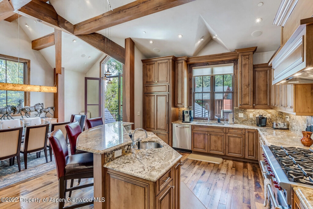 This magnificent and timeless Mountain home is situated on a prime corner lot in the heart of the Aspen Core. Only 2 blocks to the Silver Queen Gondola and walking distance to all of the best restaurants,shops & parks. Watch the fireworks on Aspen Mt from the privacy of your living room or step outside and enjoy the panoramic views of Aspen Mountain,Mt Sopris,Smuggler and Red Mountain from one of the many outdoor decks or patios. The home also features oversized ceilings and large closets throughout,a Poker table,wet bar,wine cellar,gym equipment,3 steam showers,2 jacuzzi tubs,yard and an outdoor hot tub. It is truly the perfect house for a relaxing mountain vacation or entertaining year-round! STR Permit # 068740