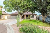 REMODELED home in North Laredo, open dining and living area. Tile floors throughout. kitchen w quartz counter and stainless appliances. garage was converted into air conditioned office with adjoin door to storage room. cul-de-sac lot, alarm, amazing backyard, block fence.