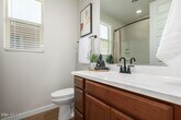 STUNNING - MODEL LIKE - ULTRA UPDATED - GATED COMMUNITY w. POOL: 3-beds,2-baths home nestled in the heart of a gated coveted community of Stonehaven. You are greeted by a well-designed front yard and cozy courtyard. With Spacious open floor plan,this home welcomes you with upgraded tile floors throughout and a great room flooded with natural light from windows throughout. The kitchen has been beautifully upgraded,featuring sleek quartz countertops,GE café appliances,a marble mosaic backsplash,and ample cabinet space. There is also an H20 water treatment. Retreat to the spacious primary suite,complete with an ensuite bath featuring dual sinks,an oversized shower,and a walk-in closet. Upgraded throughout with premium finishes and fixtures,this home offers modern amenities and .. Entertain guests effortlessly in the beautifully landscaped backyard oasis featuring artificial turf,a BBQ area with a griddle,and a sitting area perfect for al fresco dining. This home sits on a premium lot that backs up to a nicely landscaped area,allowing for privacy from neighbors. With its seamless blend of comfort,style,and sophistication,this property is a true gem not to be missed! The community amenities include a swimming pool,playgrounds,basketball courts,beautiful,wide walking paths,green spaces,and picnic areas. Near State Farm Cardinals Stadium,outlets and an entertainment district that offers restaurants,movie theaters,community events,concerts,sporting events,and so much more. Please note that the home is unfurnished. The furniture in the photos does not come with the home,and it is shown just to show the layout.