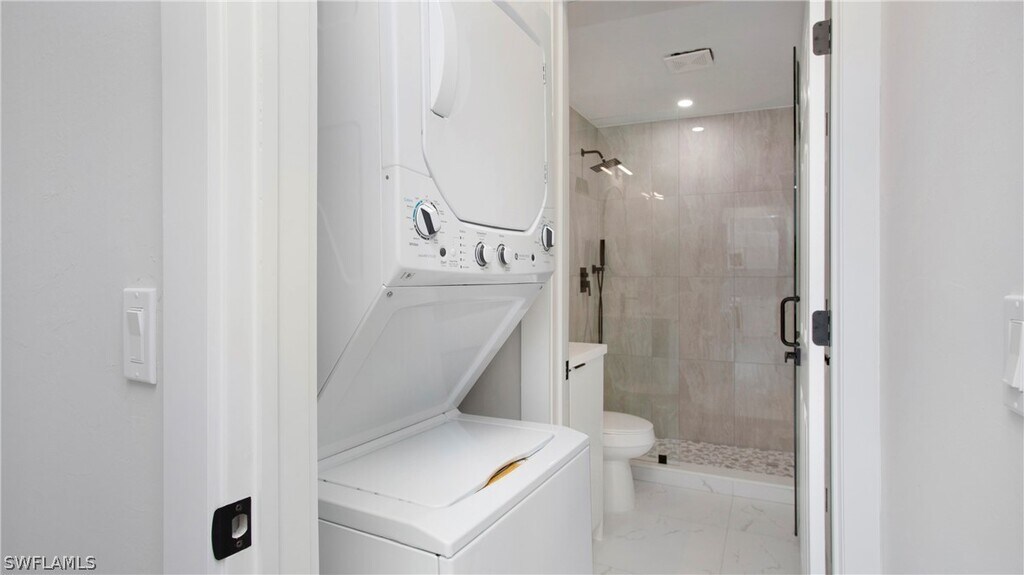 Available starting on April 1,2026. Freshly remodeled and move-in ready! This spacious second-floor unit features 2 bedrooms,2.5 bathrooms,an open layout,and a covered parking area perfect for storage or shade. Enjoy brand-new tile flooring in the kitchen and baths,updated fixtures,and the convenience of an in-unit washer and dryer. Sitting on an oversized corner lot,the property offers excellent parking,solid concrete block construction,and peace of mind in an X flood zone—meaning no flood insurance requirements thanks to its naturally elevated grounds. You’ll love the location: just 22 minutes to RSW Airport,under 3 miles to Bonita Beach,close to Naples dining and shopping,and even bike-friendly for beach trips. This unit blends modern updates with everyday convenience in one of Bonita’s most accessible areas. Utilities included are water + electric,making the monthly rate of $2,500 all-inclusive.