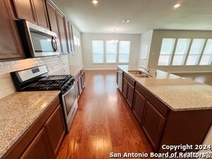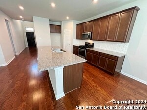 Beautiful 4 Bed 3 Bath Home on Corner Lot in Stillwater Ranch. Study with French doors. Wood floors through most of downstairs. Open Kitchen with Breakfast Bar, Granite Counters, Walk-in Pantry. Stainless Gas Stove, Microwave, Dishwasher. Huge Living Room. Upstairs is a large Game Room and 4 Bedrooms. Primary Bedroom with Walk-in Closet. Primary Bath with separate Shower, Garden Tub, Dual Sinks. Large yard with Covered Patio and Stone Wall. Dual Gas Water Heaters, 2 Car Garage with Opener. Community Pool, Playground, Tennis, Basketball. Elementary school just inside of the neighborhood. Close to Shopping, 1604, 151.