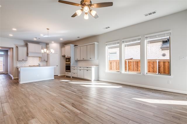 Stunning like-new PERRY HOMES! Located in the Prairie Oak community. Easy 380, 720 Access!! One story, featuring 4 beds, 3 full baths. Mud room just off the two-car garage. Open family room with three large windows extends to the kitchen and dining area. Island kitchen offers built-in seating space and corner walk-in pantry. Primary bedroom, primary bath has dual sink, separate glass-enclosed step-down shower, and large walk-in closet. Covered back yard, fenced back yard. BBQ for gas hookup is ready. Neighborhood Amenities includes Club House, Community Pool, Greenbelt, Jogging and Bike Path.