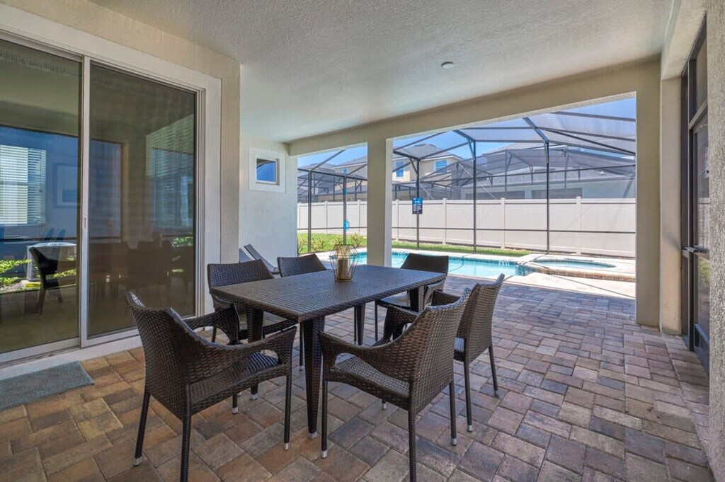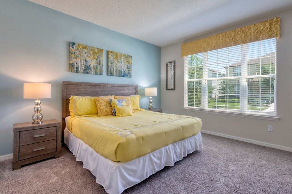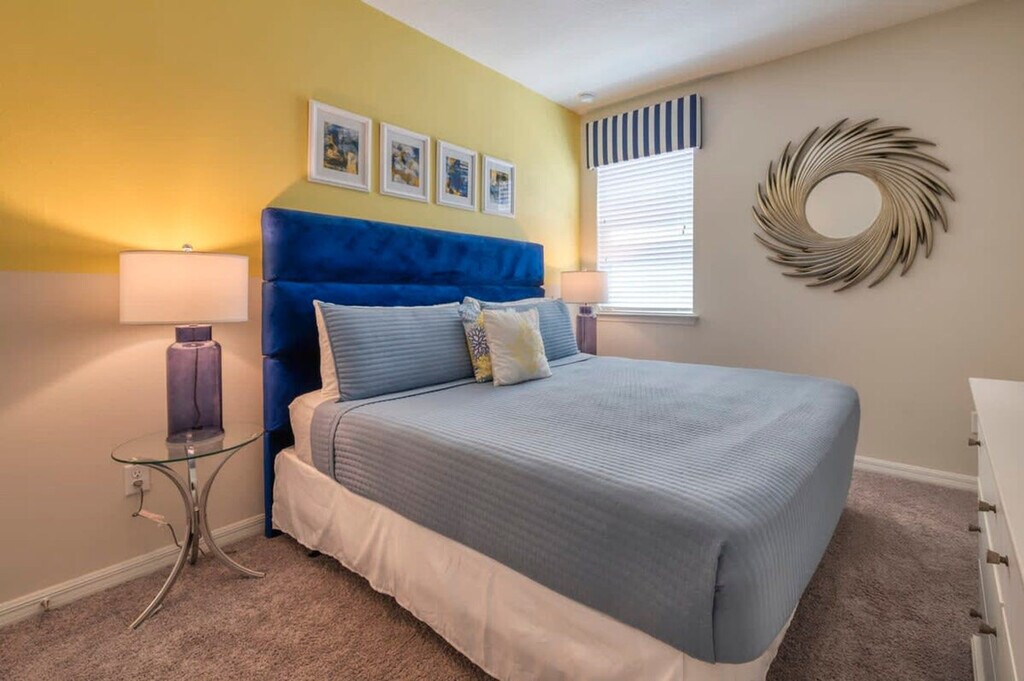 Experience the pinnacle of vacation luxury in this 6-bedroom Solara Resort home. With its exquisite décor, private pool, and spacious interiors, this retreat ensures the utmost comfort for an exceptional getaway. The resort's Super Clubhouse is a haven of family fun, featuring heated pools, a surf simulator, and a splash pad. Satisfy your culinary desires with diverse dining options, ranging from casual to upscale, and enjoy sports courts in this incredible location. Step into this spacious and exquisitely decorated 6-bedroom, 4.5-bathroom Solara Resort home, meticulously designed for your comfort and pleasure. The first floor boasts an open-concept living area, seamlessly blending the generous living room, dining area, and fully equipped kitchen, offering ample space for relaxation and dining. Step outside to your private heatable pool, the epitome of enjoyment. Still on the first floor, a queen master suite provides convenience and privacy. On the second floor, a family room invites gatherings, accompanied by a queen bedroom suite and four charmingly decorated bedrooms. One queen bedroom shares a bathroom with a bedroom featuring two single beds, while another bedroom with a double bed shares a bathroom with a Star Wars-themed bedroom, also featuring two single beds. For added convenience, a laundry room with a washer and dryer is at your service. Stay connected with complimentary Wi-Fi, park with ease, and find a welcome kit brimming with essential amenities, ensuring a comfortable start to your vacation. This spacious, beautifully themed, and impeccably appointed home at Solara Resort guarantees a memorable stay for you and your guests. Replenishment of bathroom and kitchen amenities is the guest's responsibility. Heating the pool is a paid service and there is also a fee charged to use the barbecue grill. Solara Resort in Kissimmee epitomizes the ultimate vacation destination. Nestled in the heart of Orlando's renowned attractions, this resort offers a prime location for an unforgettable escape. The resort boasts a wealth of amenities, including a magnificent Grand Clubhouse with fitness facilities, game rooms, and comfortable lounges. Solara's centerpiece is its expansive water park, featuring a heated pool, surf simulator, and splash pad for endless family fun. Dining options cater to all tastes, from casual to upscale, ensuring your culinary desires are satisfied. For outdoor enthusiasts, the resort offers basketball courts, sand volleyball, and a soccer field. Tranquil spots like walking trails, lakes, and lush gardens provide relaxation amidst the excitement. With gated entry and 24/7 security, safety is paramount. Nearby, you'll find shopping outlets and dining options, making Solara Resort a haven for both adventure seekers and those seeking relaxation. Discover the magic of Orlando at Solara Resort in Kissimmee. Quiet hours are between 22:00 and 8:00. [SI]