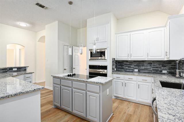 Soft natural light and generous interior proportions create an inviting tone in this 3-bedroom, 2.5-bath home in Keller. A spacious living area sits at the heart of the layout, designed for both quiet conversation and everyday ease. Picture a comfortable seating area near the windows, where your favorite décor pieces can add warmth and personality, with room to host, relax, and unwind. Just beyond, the brand-new kitchen offers a polished setting for cooking and gathering. Sleek countertops, a central island, and modern pendant lighting bring a refined touch, while the layout encourages movement between meal prep and casual dining. A digital thermostat supports comfortable living throughout the seasons. Your primary bedroom introduces a sense of calm, set apart for privacy and comfort. A fireplace here adds a unique, intimate ambiance and makes the room feel like a personal retreat. The ensuite bath features a soaking tub, walk-in shower, and generous vanity space, ready for routines both quick and unhurried. Two additional bedrooms and a half bath add flexibility for guests, dedicated work, or hobbies. Keller offers a connected and enjoyable lifestyle, with everyday essentials within easy reach. Nearby, you’ll find convenient grocery options, neighborhood parks, and access to local dining. Major roadways provide simple travel through the greater area while keeping home life grounded and serene. *Fireplace is for decorative use only and cannot be used without consent from Belong.