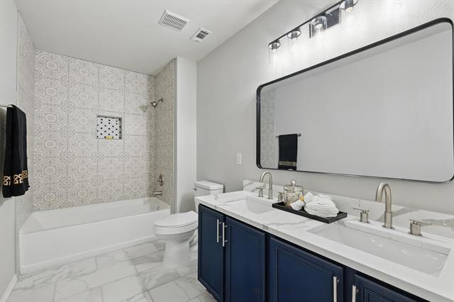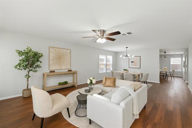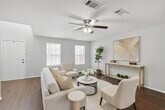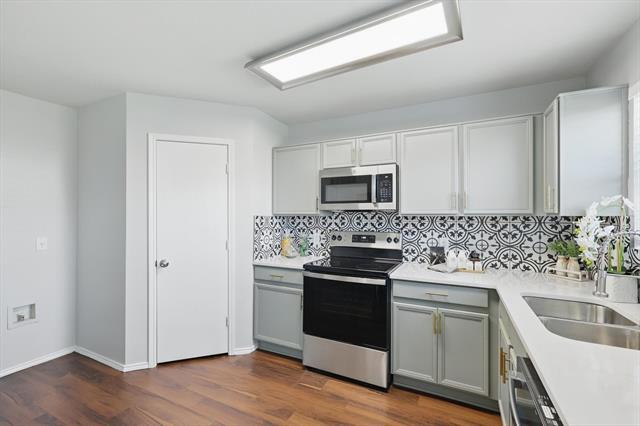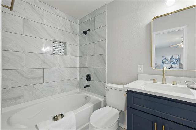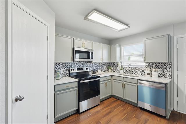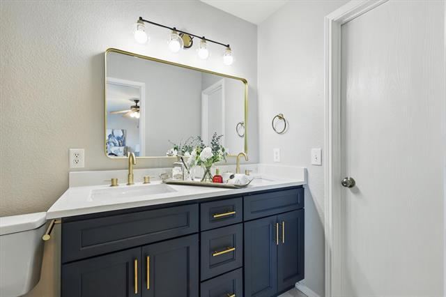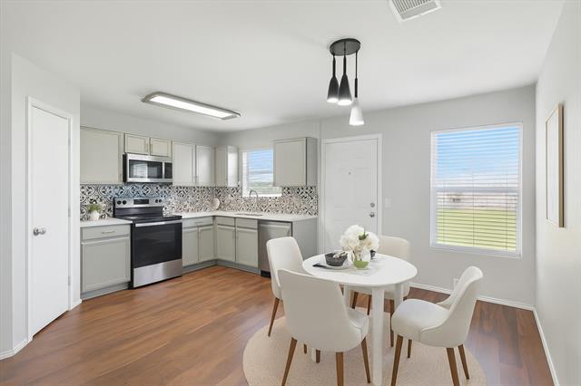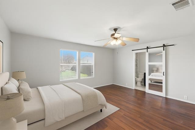 Step into modern elegance with this fully updated home featuring an open and inviting layout. The spacious primary suite offers a cozy sitting area, stylish barn door, new soaking tub, and large walk-in closet. The kitchen shines with sleek quartz countertops, new appliances, walk-in pantry, and a sunny breakfast nook overlooking the backyard. Both the guest bathroom and half bath have also been beautifully upgraded with modern finishes. Fresh interior paint, new carpet, and updated lighting add a bright, contemporary touch throughout. Located in the desirable Cross Oak Ranch community, residents enjoy resort-style amenities including a pool, fitness center, parks, and scenic walking trails. (Note: Staging furniture has been removed.)
