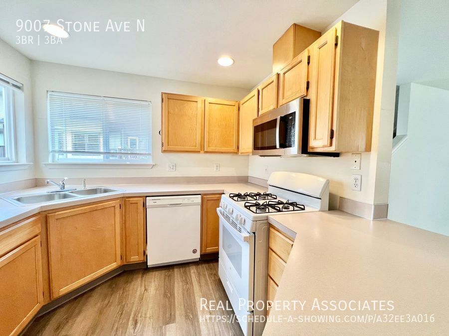 This 3 bed/2.5 bathroom townhouse is a fantastic find! With an attached garage, washer/dryer in home, and three floors of living it has everything! The entrance and ground floor has the attached garage, one bedroom with a walk-in closet, and one full bathroom. The second floor has a great spacious living room with a fireplace and island leading separating it from the kitchen space. A lovely kitchen with a gas stove, dishwasher, and plenty of counter space! Finally, the upstairs has two large bedrooms with the master having great natural light from the two large windows! Large fenced yard with lots of space for hanging out during sunny Seattle days. The bus line to downtown Seattle is just a couple of short blocks away, and really this spot is close to everything Seattle has to offer and more. Close to small restaurants and shops on Aurora. 12 Month Lease Available Tenants responsible for all utilities and yard maintenance Application: $45 per person/adult Refundable Security Deposit: $2895 Pet possible with prior approval and additional (per pet) - $30 pet application fee - $300 refundable deposit and $35 monthly pet rent - No aggressive breeds, 35 lbs max, and 1 pets maximum! ***TO SCHEDULE A SHOWING***: Renter's legal liability insurance is required and part of the Benefits Package ($30 monthly). If qualifying legal liability insurance is purchased and provided by tenant to RPA, the benefit package can be reduced to $15 monthly for reduced benefits or waived upon request. Professionally managed by: Real Property Associates, Inc. Please contact or call *In-person Tour Only **Applicant Criteria - ***Please visit our company site at for accurate information regarding unit pricing and availability 3 Floors Gas Stove Great Kitchen Great Location Great Natural Lighting In Home Storage Large Fenced Yard Large Island In Kitchen Large Living Room Lots Of Windows Pet Friendly Spacious Townhouse Walk In Closets