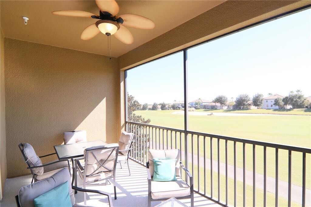 Like new,move-in-ready condo featuring expansive golf course views from your own private screened-in balcony. Flexible 3 Bedroom layout with one room featuring double doors that can be used as a loft,office,or as your 3rd bedroom suite. Gorgeous condo with a the feel of a townhome. Upon entering,the private staircase with landing leads into a spacious hallway with laundry and the 3rd bedroom and 2nd bedroom,which features a spacious walk-in closet. Open-concept living where the kitchen,dining,and living room spaces have lots of natural light from the oversized balcony doors with beautiful golf course views. The kitchen features large 42 inch espresso cabinets with crown molding,quartz countertops,subway tile back splash and stainless steel appliances,featuring a French style refrigerator. The spacious primary suite features a separate entrance to the balcony and two spacious walk-in closets. The primary en-suite spa bath is luxuriously spacious with dual vanities,large garden tub,and a separate glass-enclosed shower,a private water closet,and a private linen closet. The home also includes a private one-car garage and driveway with access to the home's private stairway access. The Champions Club at Champions Gate offers an exceptional resort lifestyle including access to a clubhouse,fitness center,and resort-style pool and spa. Residents at Champions Gate community are also very close to world-class golf courses,dining,shopping,and legendary entertainment options throughout Central Florida. Schedule your showing today! MLS# S5138091