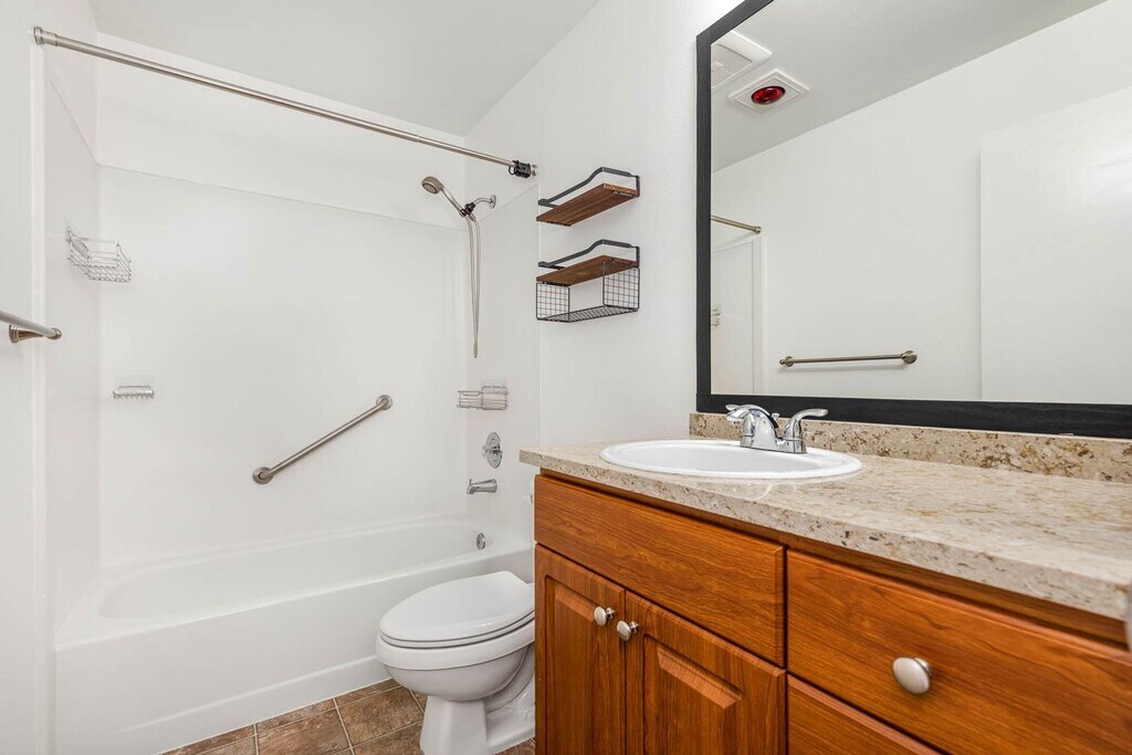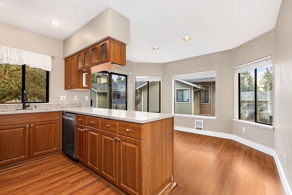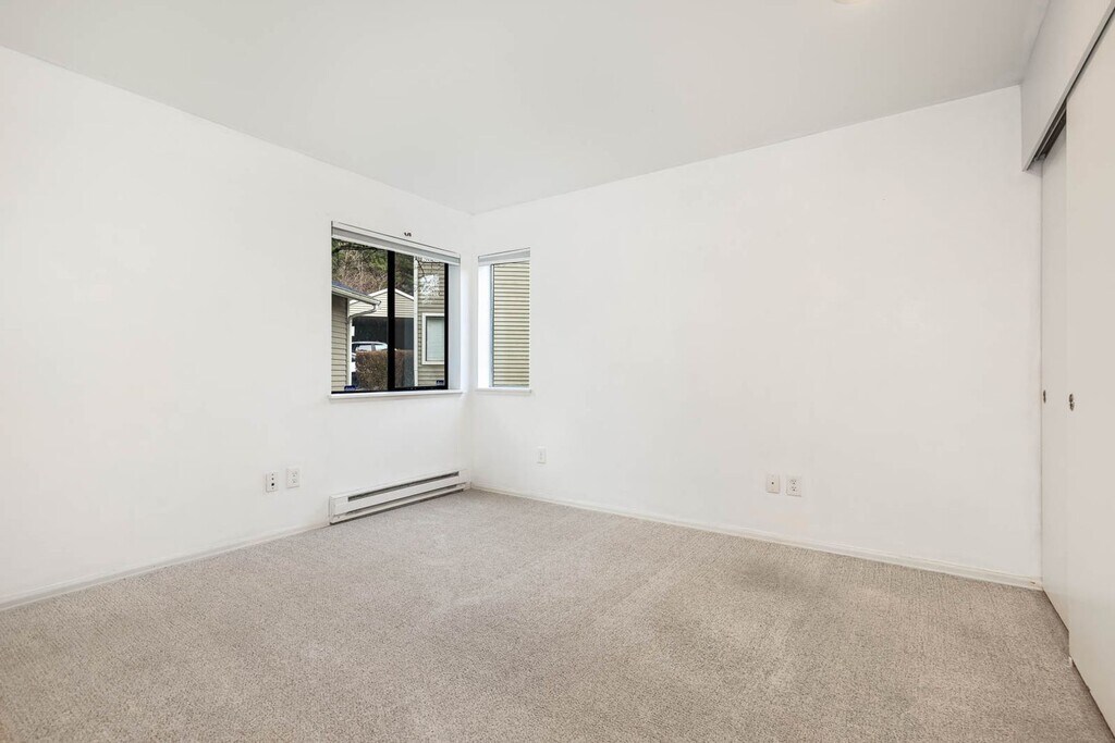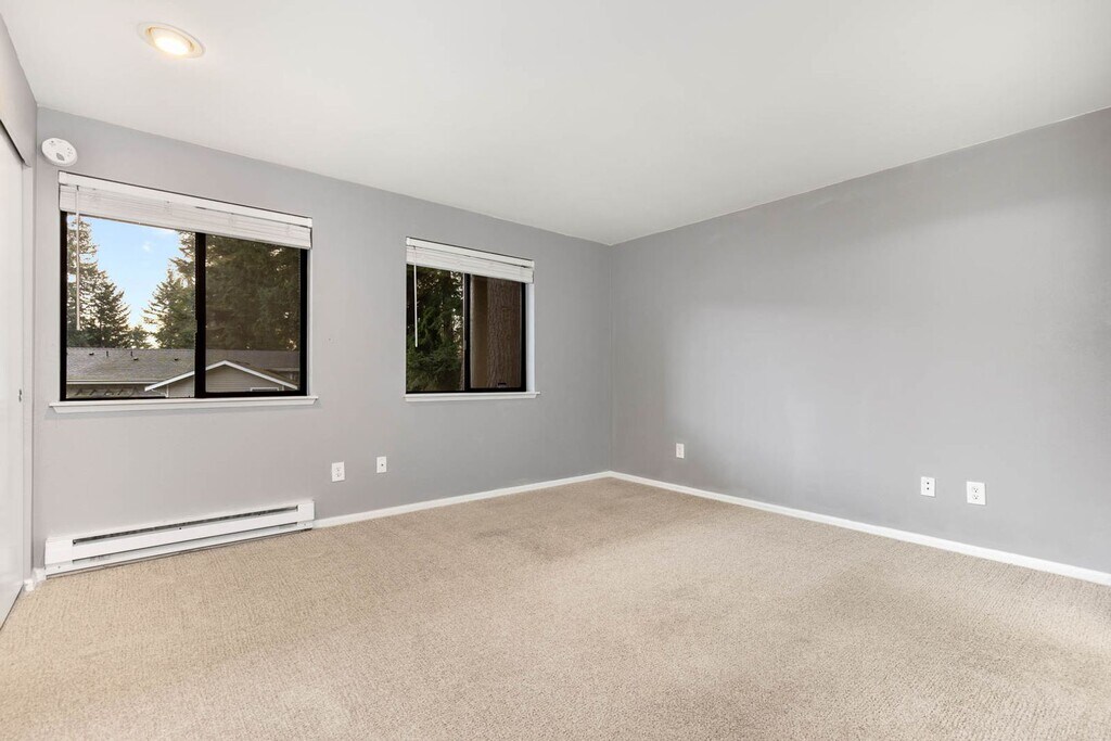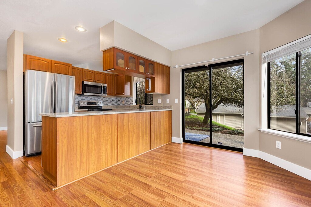 This beautifully updated ground-floor end unit is filled with natural light and offers a spacious, welcoming layout. The open entry leads into a sunken living room with tall ceilings and a cozy fireplace, creating a warm and inviting atmosphere that feels both open and comfortable. The bright, updated kitchen features ample cabinetry, an eat-in dining area, and direct access to a private patio—perfect for morning coffee or relaxing evenings. Two generously sized bedrooms and two full bathrooms provide flexibility for guests, a home office, or shared living. Additional conveniences include in-unit laundry, one detached garage, and plenty of guest parking. Residents also enjoy access to the community center, pool, and fitness center. Ideally located in the highly regarded Lake Washington School District and just minutes from downtown Redmond, SR-520, Costco, shopping, dining, theaters, and nearby parks—this home offers exceptional comfort and an unbeatable location. 12-month lease available; 16/17 month lease preferred Required Resident Benefit Program for an additional $36.50 per month. Program details and benefits can be found at