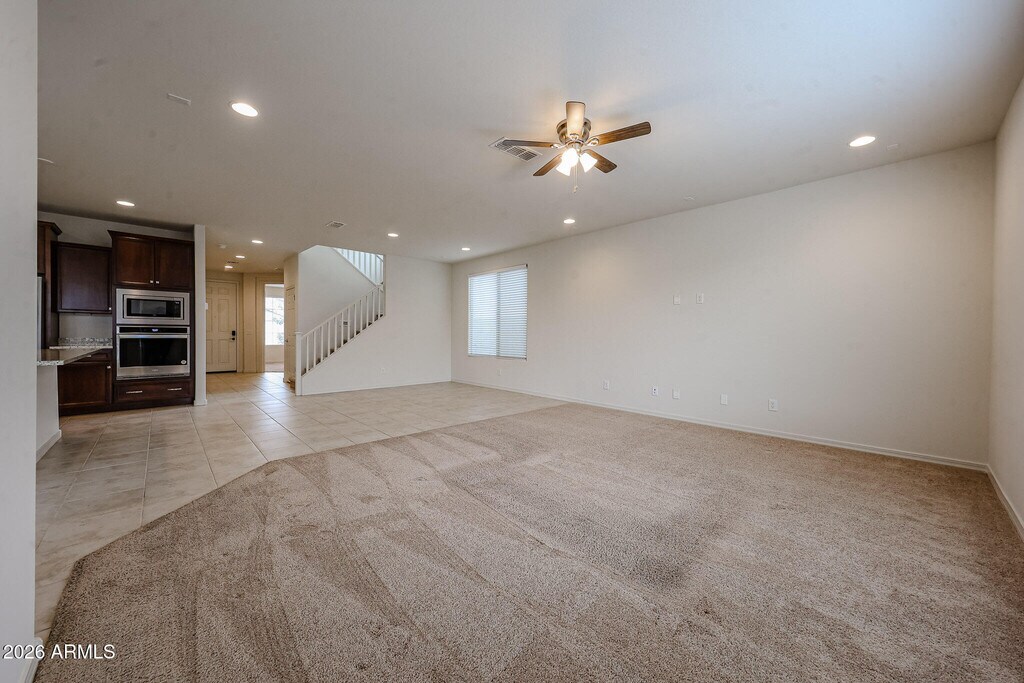 4 bedroom and 2.5 bath home in Stonehaven! This open floor plan has it all! Kitchen with stainless steel appliances,gas stove,center island and gorgeous granite countertops! Kitchen overlooks a spacious great room with tons of natural light and is a wonderful spot for entertaining! Walk upstairs to a spacious loft and secondary bedrooms with lots of closet space. Master bedroom has a walk in closet,master bath has double sinks and walk in shower! No maintenance backyard landscaping with turf and desert plants. Community offers lots of fun amenities!