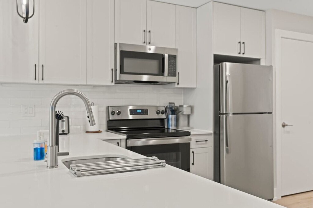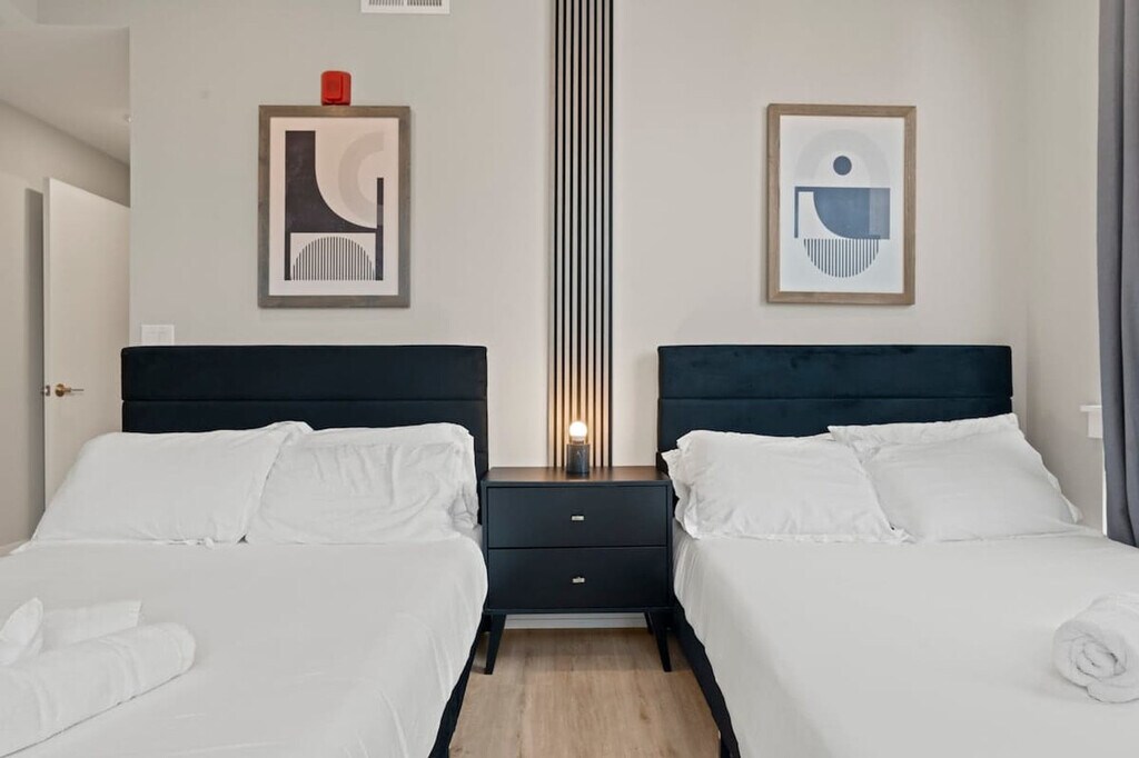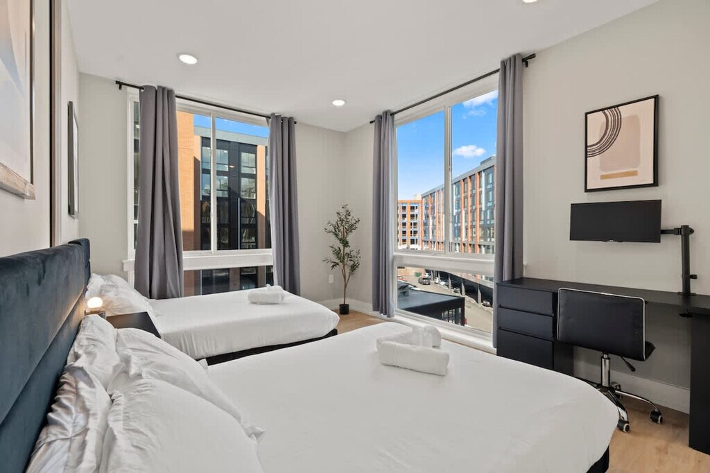 Elevate your stay in this stunning 2-bedroom, 2.5-bath luxury apartment in Philadelphia. Relax in a spacious living area with designer furniture, a smart TV, and an elegant dining space. The modern kitchen is fully equipped with high-end appliances for effortless cooking. Both bedrooms feature plush beds and premium linens, creating a chic, comfortable urban oasis perfect for families, friends, or business travelers seeking style and convenience. Welcome to your spacious Philadelphia retreat! This modern 2-bedroom, 2.5-bathroom apartment comfortably sleeps 8, featuring 3 queen beds and a twin pull-out sofa, making it perfect for families, friends, or business travelers. Each bedroom offers plush bedding and cozy furnishings for a restful night’s sleep, while the living area is ideal for gathering and relaxing. Stay entertained with 55” TVs, stream your favorite shows, or unwind with a movie night. The fully equipped kitchen includes a coffee maker, toaster, and utensils, allowing you to cook meals at your convenience. A dedicated workspace ensures you can work or study comfortably, and the in-unit washer and dryer make longer stays effortless. With 2.5 bathrooms, mornings and evenings are smooth and stress-free for all guests. Pets are welcome with prior approval based on size and type. A cleaning fee per pet applies as follows: $25 per night for 1–4 nights, $200 for 5–29 nights, and $300 for 30+ nights. Located near iconic Philly landmarks such as the Liberty Bell, Independence Hall, Reading Terminal Market, and top restaurants, this apartment combines style, comfort, and convenience. Whether you’re visiting for sightseeing, business, or a fun city getaway, this modern retreat provides everything you need for a memorable stay. Enjoy a private stay while knowing help is just a message away. Assistance is available for any questions or needs during your visit. Treat the space with care and respect. This is a non-smoking home and a $500 fee will apply if smoking is detected indoors. Kindly remove your shoes upon entering the house and wash any dishes you use before checking out. Check-in instructions may be shared only after successful verification. Includes a dedicated workspace to ensure you can work or study comfortably. A laptop computer is not included. [SI]