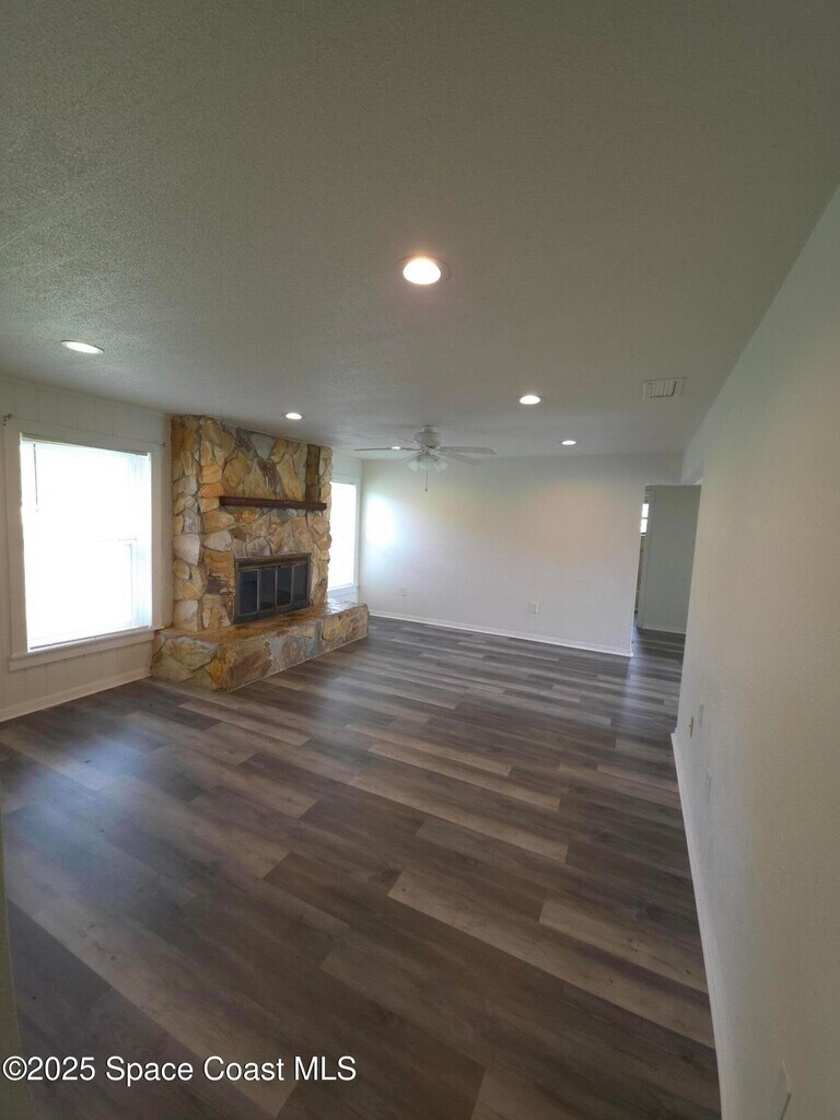 Welcome to 901 Colonial Ave,Palm Bay,FL a beautifully updated 3-bedroom,2-bath home with 1,270 sq. ft. of living space,with city water. This residence offers a bright open layout,modern finishes,and comfortable indoor and outdoor living. The spacious living room features new luxury vinyl plank flooring and a classic stone fireplace,creating a warm and inviting atmosphere. The updated kitchen is equipped with stainless steel appliances,granite countertops,and ample cabinetry,perfect for both daily living and entertaining. The primary suite includes a modern,tiled walk-in shower with a built-in bench. Two additional bedrooms offer flexibility for guests,family,or a home office. Located in a quiet neighborhood close to top-rated schools,shopping,parks,and major commuter routes. This home also includes an attached garage and a large front yard. *Owner request when moving furniture,must use sliders to move furniture. DO NOT push or drag furniture on the floor