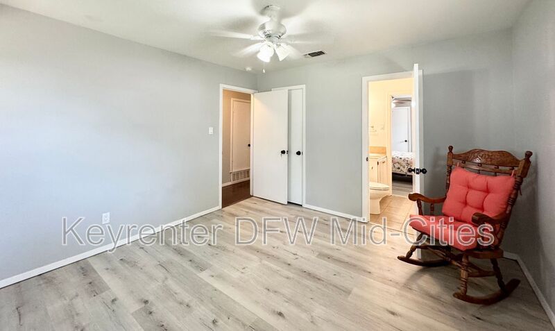 Beautifully maintained 3 bedroom 2 full bath home located on a leafy street in Bedford, Texas. This house has it all! From the entry with it’s office or extra sitting area, to the updated kitchen with granite countertops, stainless appliances, black refrigerator to the updated bathrooms, this is it! A huge living space flows into an eating area that flows again into the bedrooms in this wonderfully thoughtful home. A mixture of hardwood floors, carpeting, ceramic and hidden rooms makes this the ideal home for living the life! Specially designed and updated lighting is an added bonus to this already spectacular home. The backyard is incredibly large and features old growth trees. Truly a must see home that has seen love from it’s owners. A large 2 car garage with built in shelving completes the dream. Some furnishings located inside the home are negotiable to incoming tenants. $2600 monthly $2600 security. Pets are welcome with deposit and approval by owner. To see or apply: Amenities: Huge Backyard, Great Location