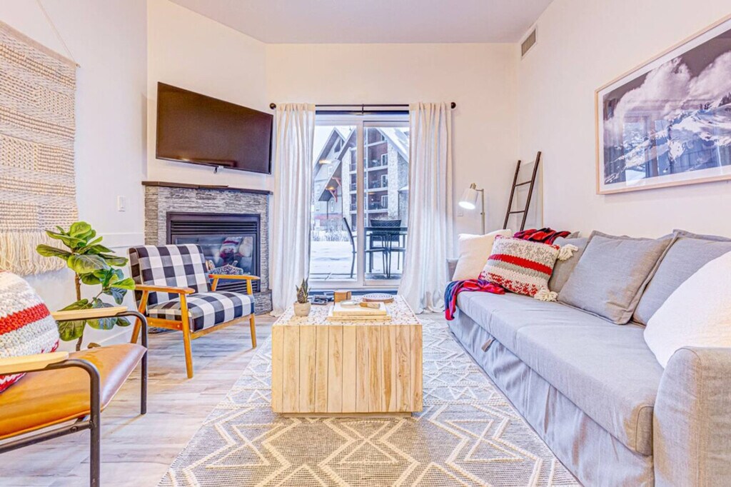 The advertised rate of C$5,103/month is the lowest available price, based on a 1 month(s) stay with a move-in date of April 3, 2026. Rates vary depending on the duration of stay, season, and other parameters. For exact pricing and additional pricing components, please visit our website and enter your desired move-in and move-out dates. The rate is applicable when billed upfront; it can be higher if billed in multiple payments. Start your Rocky Mountain getaway and feel at home in this beautiful condo, just a short walk to Downtown Canmore. This wheelchair-accessible main-floor unit offers a perfect base for your adventure. This newly renovated condo features a fully equipped kitchen, in-suite laundry, air conditioning, a gas fireplace, fast Wi-Fi, and cable. Enjoy the 50" Roku Smart TV in the living room and a 32" Roku TV in the bedroom. The Grande Rockies Resort features an amazing indoor waterpark, equipped with an inviting heated pool, a thrilling three-story waterslide, and a lively kids' splash pool. There is also an indoor/outdoor hot tub to unwind in and a delicious on-site restaurant. Enjoy heated underground parking. A complimentary Parks Canada Pass is provided for exploring Banff, Lake Louise and beyond. Nestled in the heart of the Canadian Rockies, Canmore offers a perfect blend of adventure and relaxation, from scenic hikes and biking trails to boutique shopping and local dining. Explore the Canmore Nordic Centre, take a stroll downtown, or venture into Banff National Park just 20 minutes away. The apartment is just a 5–10 minute walk from downtown Canmore, with trails, parks, cafés, and restaurants all within easy reach. Please observe quiet hours from 10 PM to 8 AM, as there are neighbors to respect. A $500 fee will be charged if there is evidence of any unauthorized events or parties on the property at any time. Pets are not permitted in the apartment. A minimum $250 fee will be charged if there is evidence of any unauthorized pets in the property and may increase to cover additional cleaning or damages. Strictly no smoking, vaping, or illegal substances are allowed inside the property. Violations incur a minimum $400 fee, with additional cleaning charges if damage or lingering odors are found. The main entrance to the building is locked from 11 PM to 7 AM, and you will receive an access code for after-hours access. [SI]