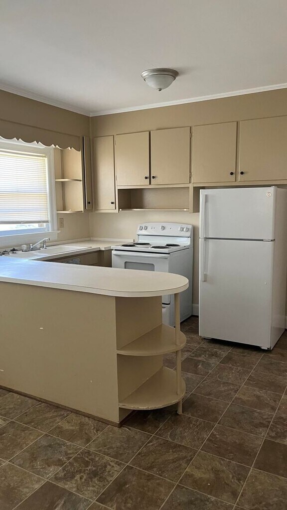 2 bed, 1 bath duplex. Gas heat. Stove and Refrigerator included. No pets. No Section 8.