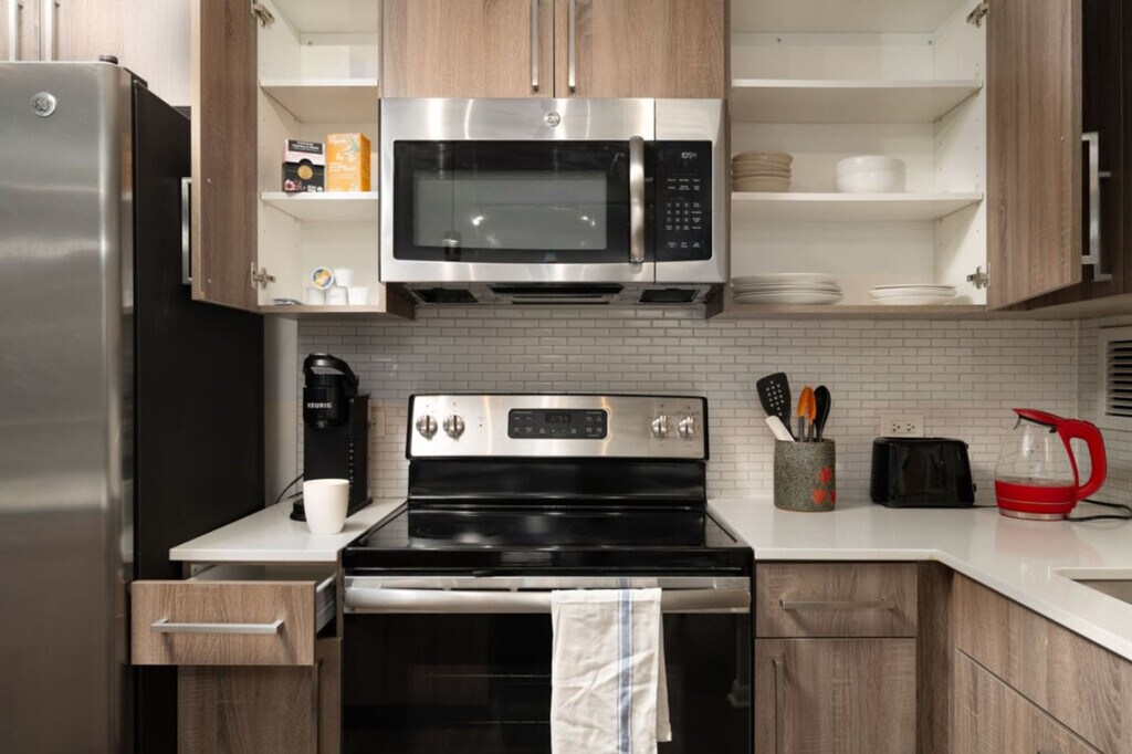 Enjoy seamless living and feel at home in this apartment in a renovated building directly across the street from UIC and Rush. The apartment comfortably sleeps two with a queen bed and has flexible seating areas so you can work or relax at your convenience. The living room sofa may serve as an additional sleeping area, however please note it does not have a pull-out bed. Building amenities include a fitness center, yoga studio, private work stations, conference room with printing, game room and lounge, shared outdoor pool (open Memorial Day to Labor Day), grilling stations, community walking path, vending machines, shared laundry room, Tide dry cleaning lockers, and Luxer package lockers. Apartment amenities include a smart TV, high-speed Wi-Fi, memory foam mattress, dedicated workspace, dining table, and kitchen island with bar stool seating. Reserved parking costs approximately $200 per month and can be coordinated upon request. This centrally located apartment provides quick access to cafes, restaurants, and bars on Taylor St as well as parks and grocery stores within walking distance for all your daily needs. It's a 5-minute walk to the L stop on Polk St, where the pink line provides direct access to West Loop, The Loop, and Pilsen. It's also a 5-minute drive to West Loop and an 8-minute drive to The Loop. The apartment has central air, but the HVAC system is a two-pipe system which can only run heat or AC at any point in time. The system switches over to heat in the fall each year and switches to AC in the spring. No smoking of any kind is allowed anywhere on the premises, including outdoor spaces ($150 fine will be assessed and additional fees for remediation may apply). Quiet time is after 10pm. Guests must cover the cost to replace unreturned access devices such as keys, key cards, fobs, or parking passes. Guests who violate these rules are liable for any associated damages, fees, or expenses and may be removed from the property without refund. Includes a dedicated workspace. [SI]