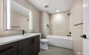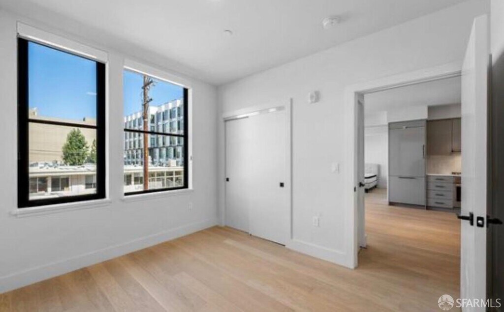 Welcome home to the coolest condo in the hottest hippest hood in the City. Form and function converge in this sleek tranquil 2 bed, 2 bath newly-constructed (2019) modern sanctuary. The living area separates the light-filled master bedroom with ensuite from the other bedroom and bath. With wide plank oak hardwood floors throughout, enjoy the air-conditioned comforts in this secluded retreat in SF's most dynamic neighborhood. The elevator building features a superior roof deck with gracious dining area with 2 barbecues, landscaping, firepit with seating and TV for fun get-togethers. Independent parking space which is really advantageous even though the Third Street Light Rail is less than a block away. This home is steps from too many bars, restaurants, breweries, and cool coffee shops to count. Parking is additional $300 per month. Sorry. no pets.