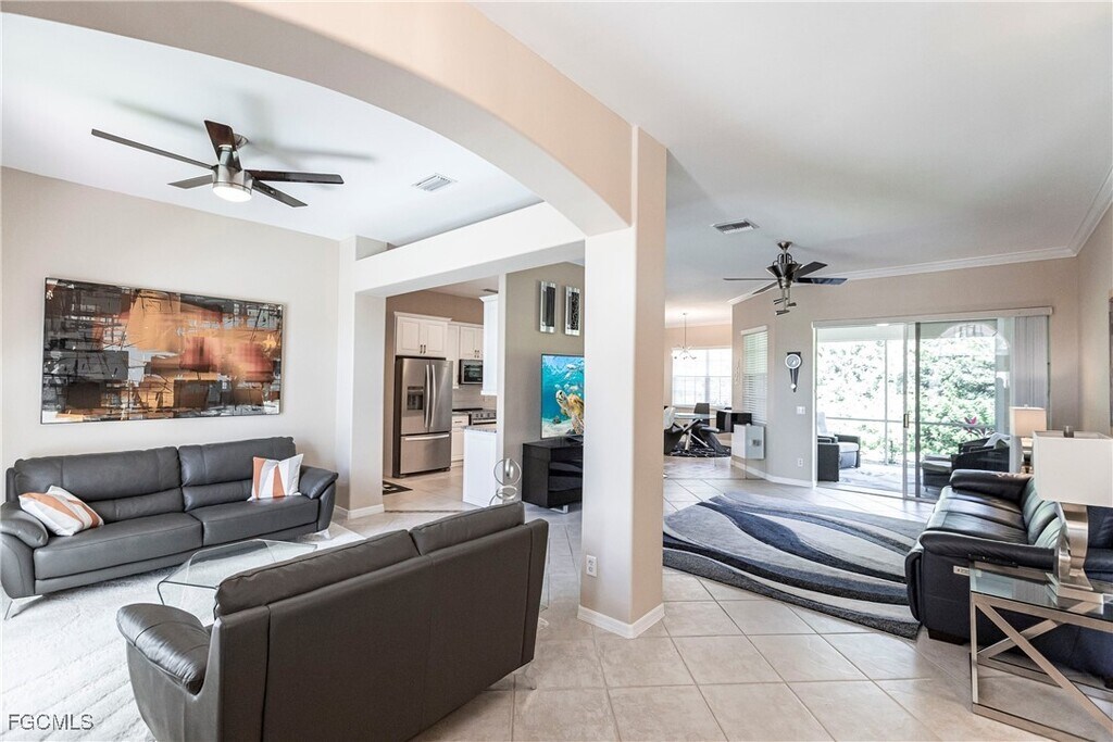 Single home conveniently located off Daniels Parkway! This light and bright single-family home boasts 3 bedrooms,2 bathrooms,and a 2-car garage. Updated kitchen with granite countertops and stainless appliances. So many updates in this home,including updated lighting throughout and newer washer and dryer in the laundry room. The spacious garage has custom storage racks. For relaxing,enjoy the large,private tiled lanai. The community pool is perfect on hot summer days! Quiet cul de sac location. Daniels Villas is a small community off Fiddlesticks Blvd. with easy access to I 75,RSW,FGCU,Gulf Coast Town Center and so much more! Home is not furnished.