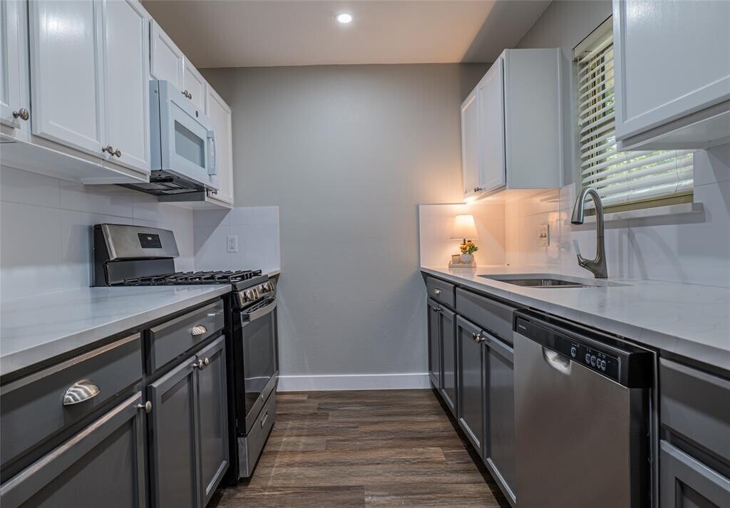 Beautifully updated 3-bedroom, 2-bath home in North Austin offering space, privacy, and modern comfort. The layout is ideal for anyone who wants room to spread out, work from home, or simply enjoy a more spacious living experience without apartment-style limitations. Inside, the home features new flooring, fresh paint, recessed lighting, and an inviting open living area. The kitchen has been fully renovated with two-tone cabinetry, quartz-style countertops, stainless steel appliances, and updated hardware. The standout feature is the large primary suite with a beautifully finished en-suite bathroom—something that’s rare to find in this part of North Austin. The exterior offers features you don’t often see in nearby properties: a full garage for secure parking or storage, plus a massive fenced backyard that provides plenty of room for outdoor activities, gardening, pets, or weekend gatherings. Mature trees add shade and character, and the updated façade creates warm, welcoming curb appeal. Conveniently located near Hwy 183, I-35, The Domain, Q2 Stadium, tech employers, and multiple parks. This home combines modern upgrades with hard-to-find lot size and functionality, making it a great option for anyone seeking more space and comfort in a central North Austin location.