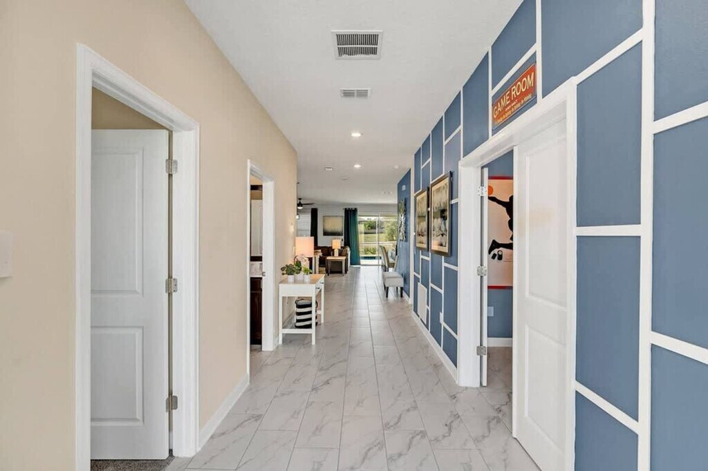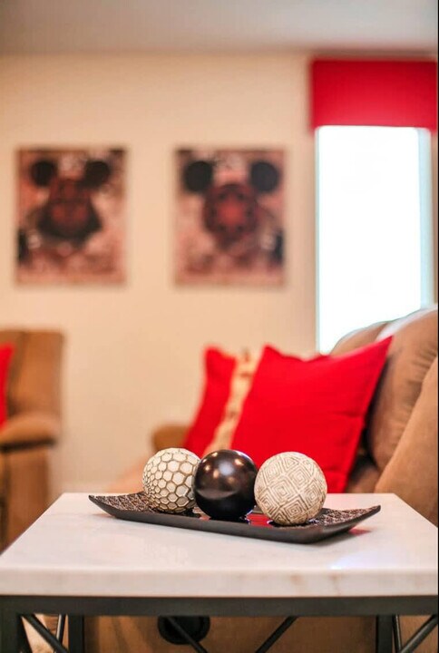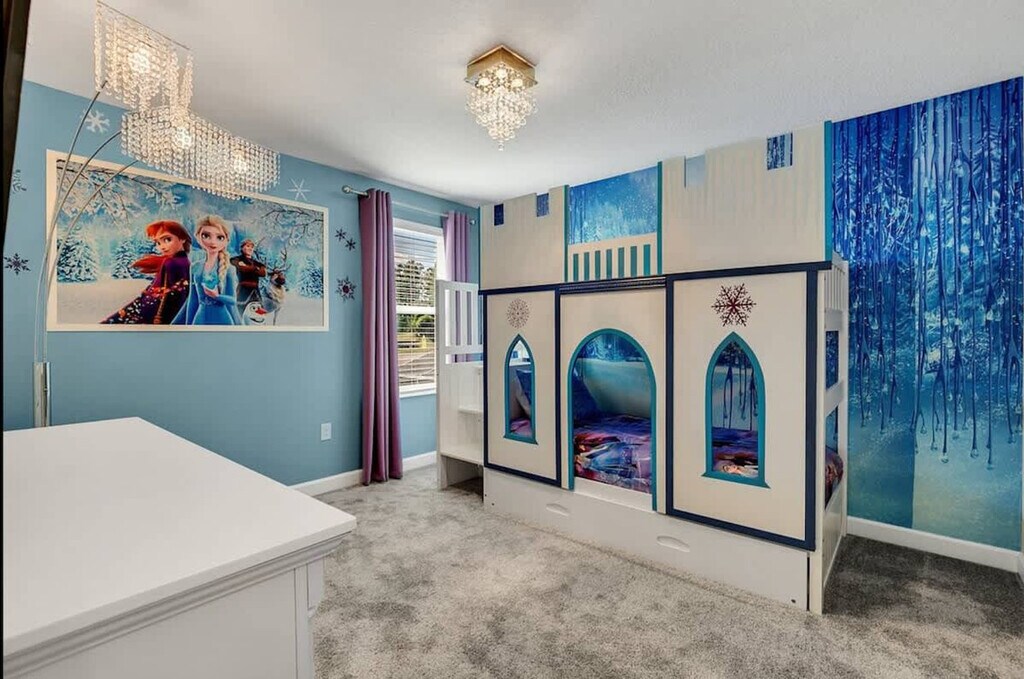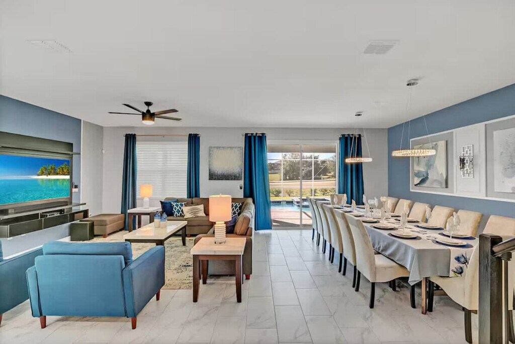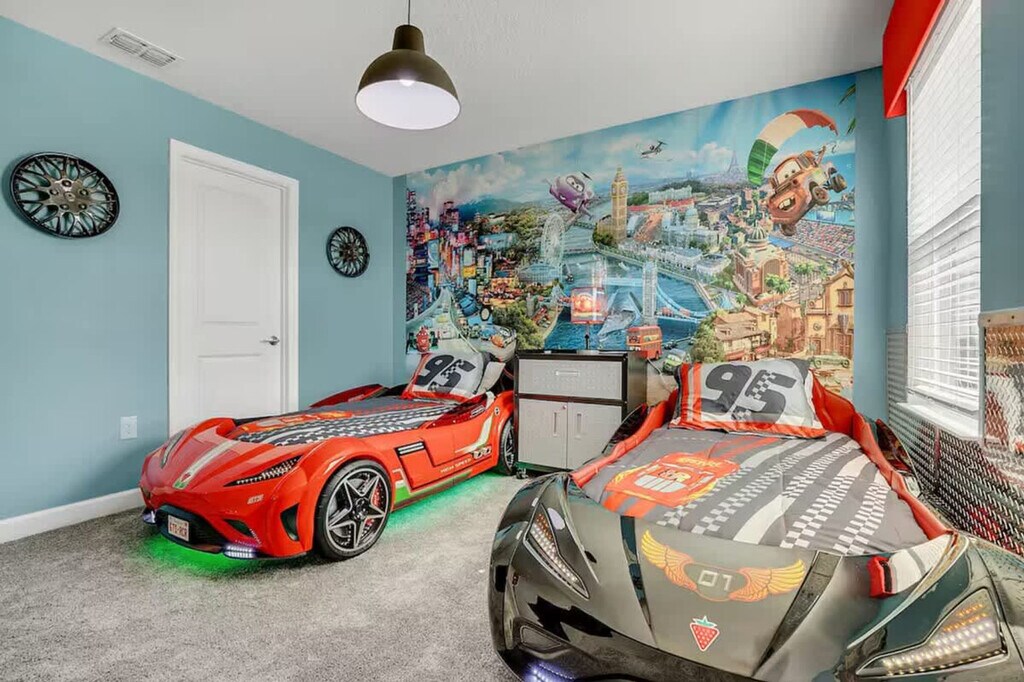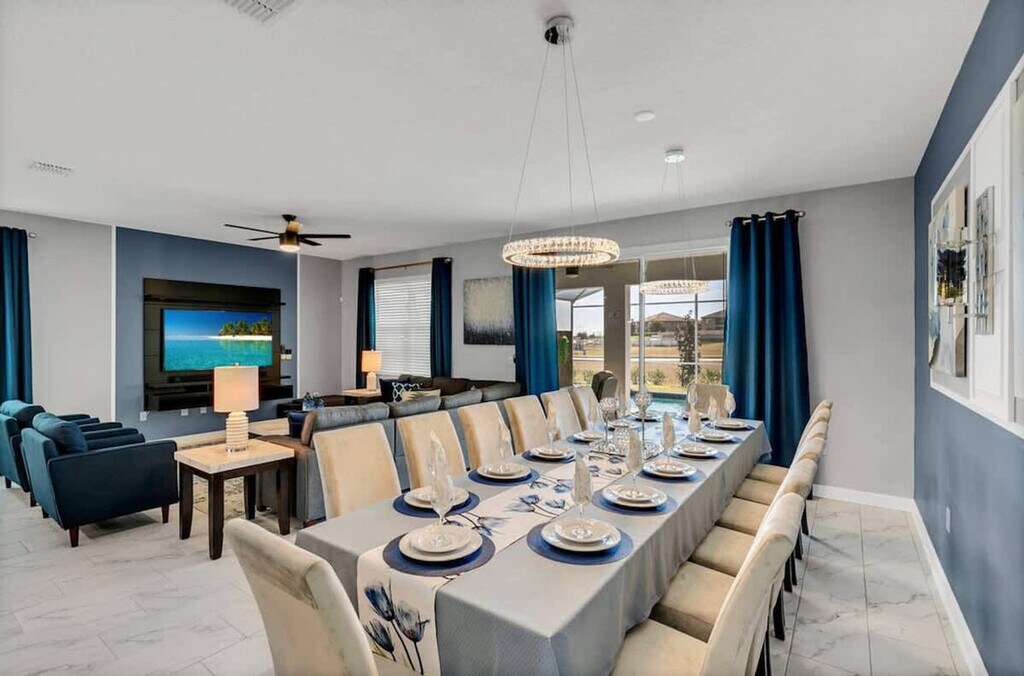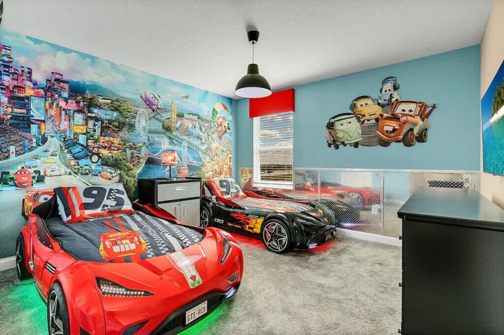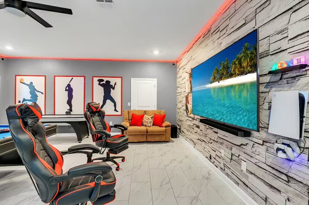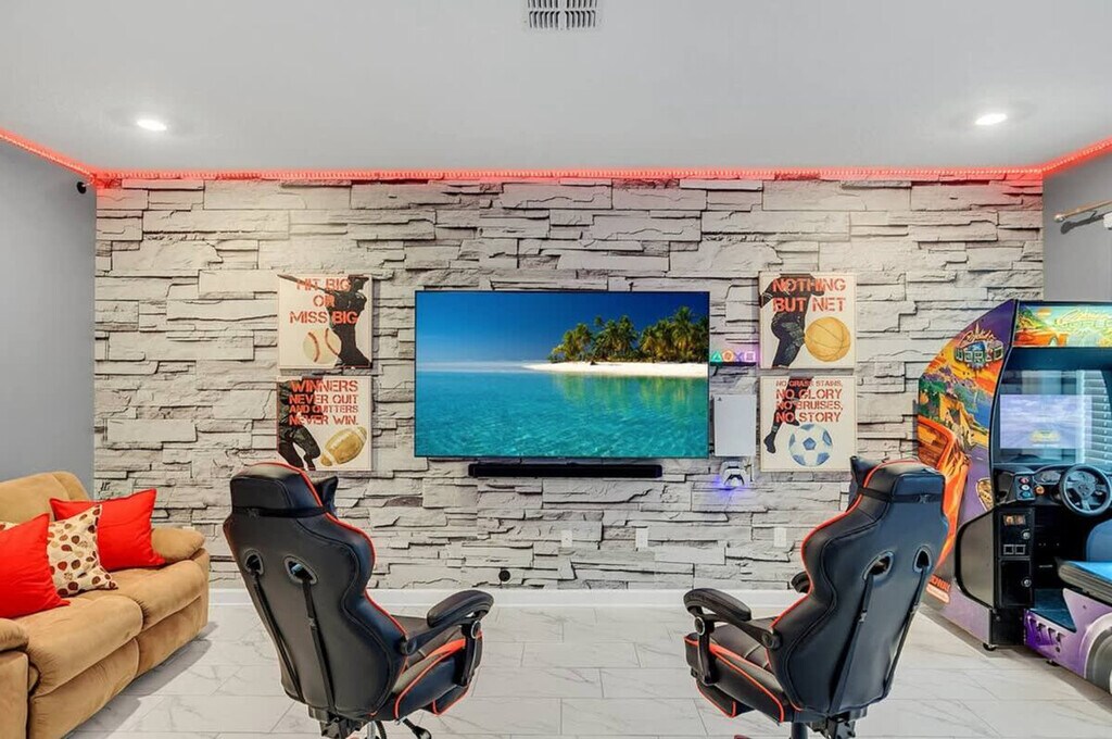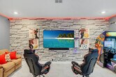 The advertised rate of $8,605/month is the lowest available price, based on a 1 month(s) stay with a move-in date of September 8, 2026. Rates vary depending on the duration of stay, season, and other parameters. For exact pricing and additional pricing components, please visit our website and enter your desired move-in and move-out dates. The rate is applicable when billed upfront; it can be higher if billed in multiple payments. Feel at home in this spacious home designed for an unforgettable escape for families or groups. This 9-bedroom, 5-bath home accommodates a maximum of 16 people. This home features themed bedrooms, a private heated pool, an arcade game room inside the house, a clubhouse with an arcade game room, pool patio furniture for up to 10 people, smart TVs in all rooms, a dining area, super-fast Wi-Fi, hot and cold A/C, a washer and dryer, complimentary toiletries, hair dryers, bed linens, towels and a kid's play area. The fully stocked kitchen includes modern appliances such as a fridge, stove, dishwasher, coffee maker, microwave, toaster, dishware and silverware. Private pool heating is available for $40 per day, and pack-n-play, high chair, and stroller rentals are each available for $25. Enjoy access to water parks with a resort pool, lazy river, hot tub, kid's splash pad, water slides, fitness center, half basketball court, sand volleyball court, tiki bar, ice cream shop, kayaking, mini-golf, a 4k movie theater, tennis court and adult golf course. Nearby attractions include Animal Kingdom, Magic Kingdom and Epcot, each 17 minutes away, Hollywood Studios 17 minutes away, Universal Studios & Volcano Bay 27 minutes away, SeaWorld 27 minutes away and Discovery Cove 18 minutes away. No house parties are allowed inside the house. A maximum of six cars are allowed at the property, and RVs, campers, limousines, boats and boat trailers are not allowed. Smoking is prohibited inside the property and will result in a fine of up to $500 if reported by maintenance or housekeeping. Check-in is at 4 PM and check-out is at 10 AM. Any damage or missing games are the responsibility of the guests and may result in additional charges. Includes a business work desk. *Housekeeping: No daily housekeeping service is included in the rental rate. If you need mid-stay cleaning services, it can be requested for an additional charge. The following vehicles are not allowed: Three-wheeled motorcycles, Trailers, RVs, Buses, Limos, Boats, Tow truck, Box-trucks, Food trucks, Bounce houses and Car carriers [SI]