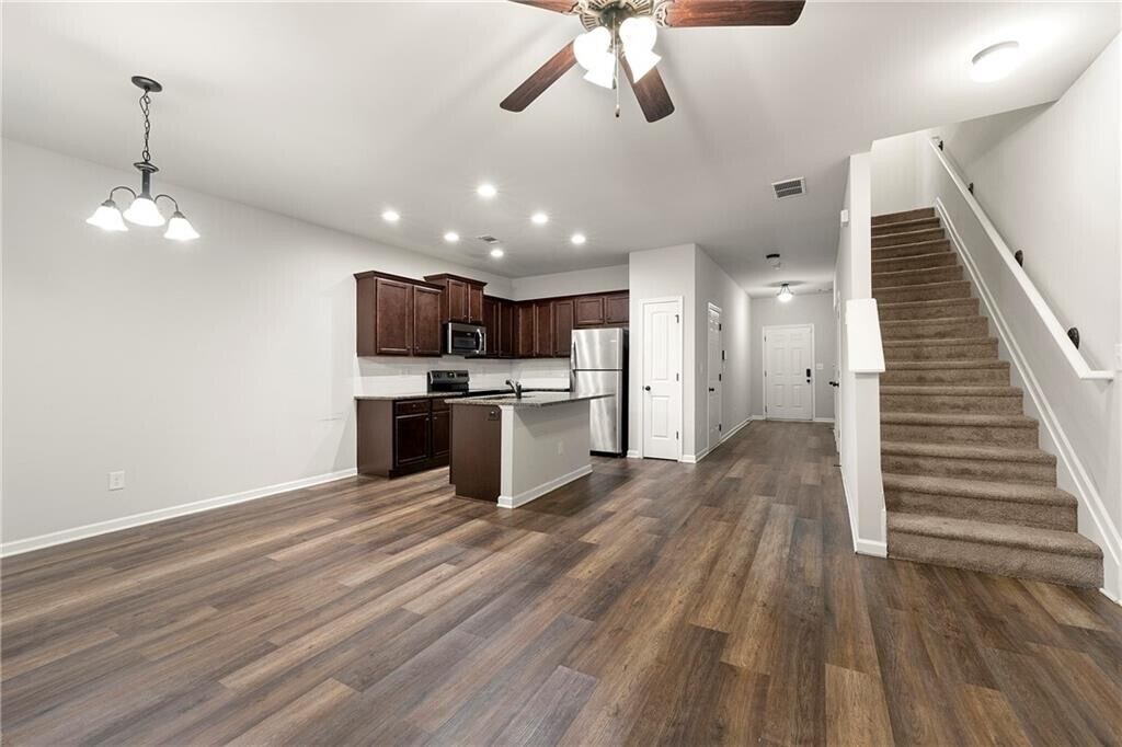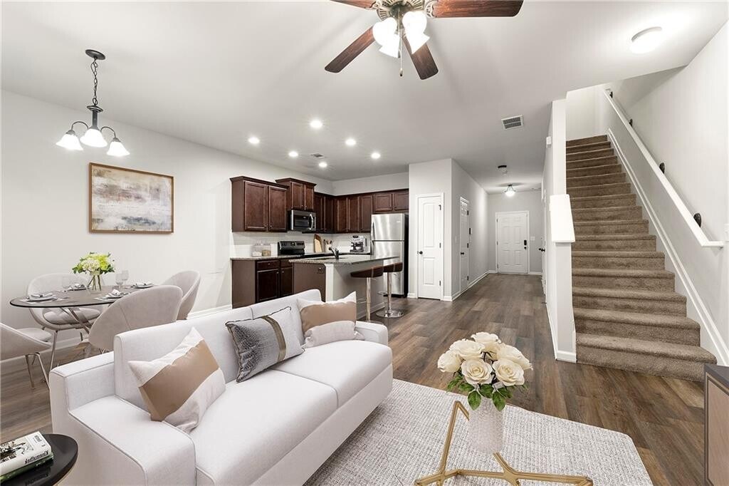 Spacious 3BR/2.5BA Townhome Prime Location Welcome to this beautiful 3-bedroom,2.5-bath townhome located in a quiet,well-kept neighborhood. The home features: Carpeted bedrooms upstairs for comfort and privacy Laminate flooring throughout the kitchen,dining,and living areas on the lower level A one-car garage plus driveway parking A small backyard perfect for relaxing or light outdoor activities Conveniently situated just 10 minutes from the airport and 15 minutes from Camp Creek Parkway,with easy access to LA Fitness,Walmart,Kroger,restaurants,and more. This townhome offers the perfect balance of comfort,convenience,and community living.