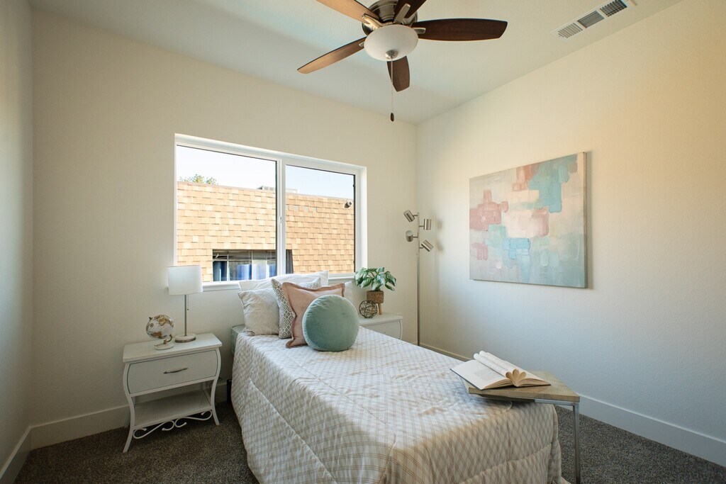 This unit is a brand new spacious 3 bedroom, 2.5 bath two-story townhome, with a private patio, an attached one car finished garage with an electric opener and EV charger . The kitchen contains ample cabinet space and is completed with granite counter tops and all electric appliances with solar assisted power. Appliances include microwave, range, dishwasher and full size refrigerator with water dispenser and ice maker. This unit also offers a half bath and full size washer dryer hook-ups on the first floor. All 3 bedrooms are upstairs along with 2 full bathrooms and additional storage area in the hallway. First floor and all bathrooms are laid in 12x24 ceramic tile and the upstairs areas are completed in carpet. For your peace of mind each unit has a lockable secure package delivery box for all Amazon and other deliveries. Landlord pays for water, sewer, and garbage. Additionally, Spectrum TV Essentials and Advanced Community WiFi Ultra are included in your rent! Discover Turloc...