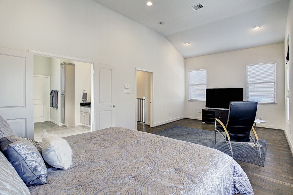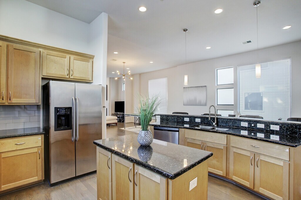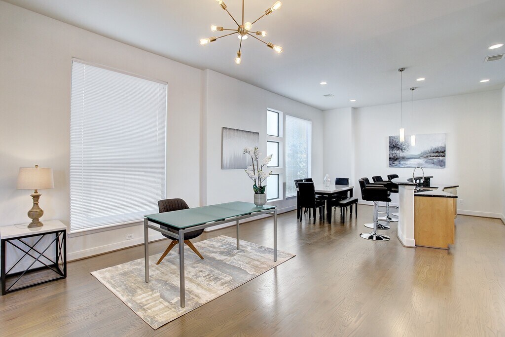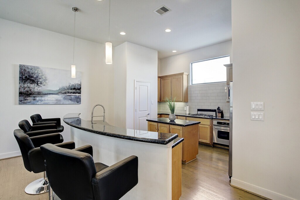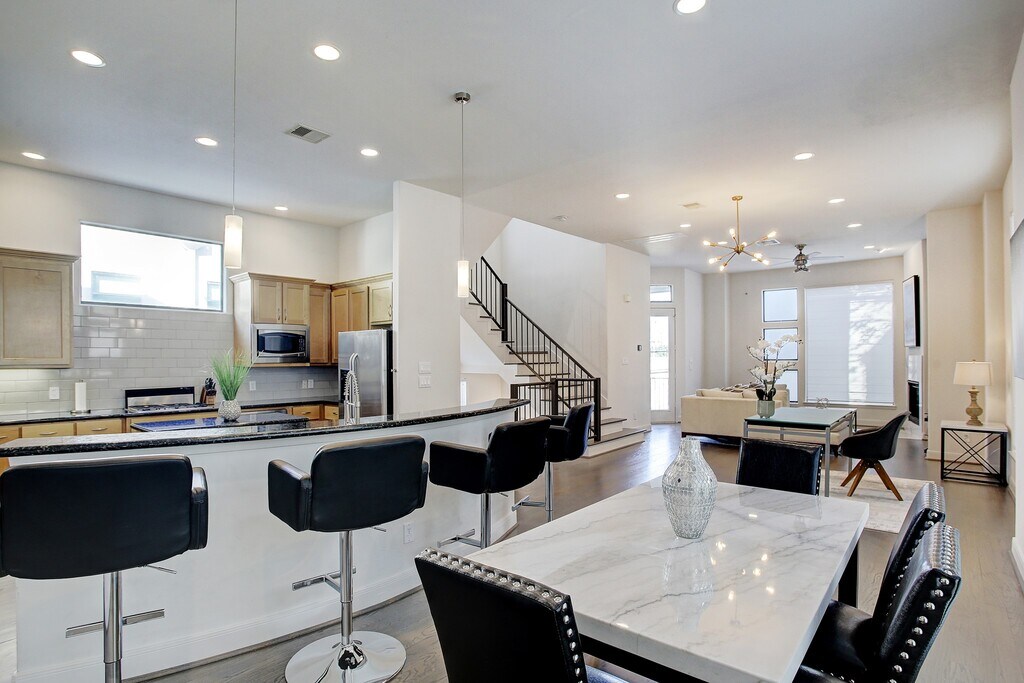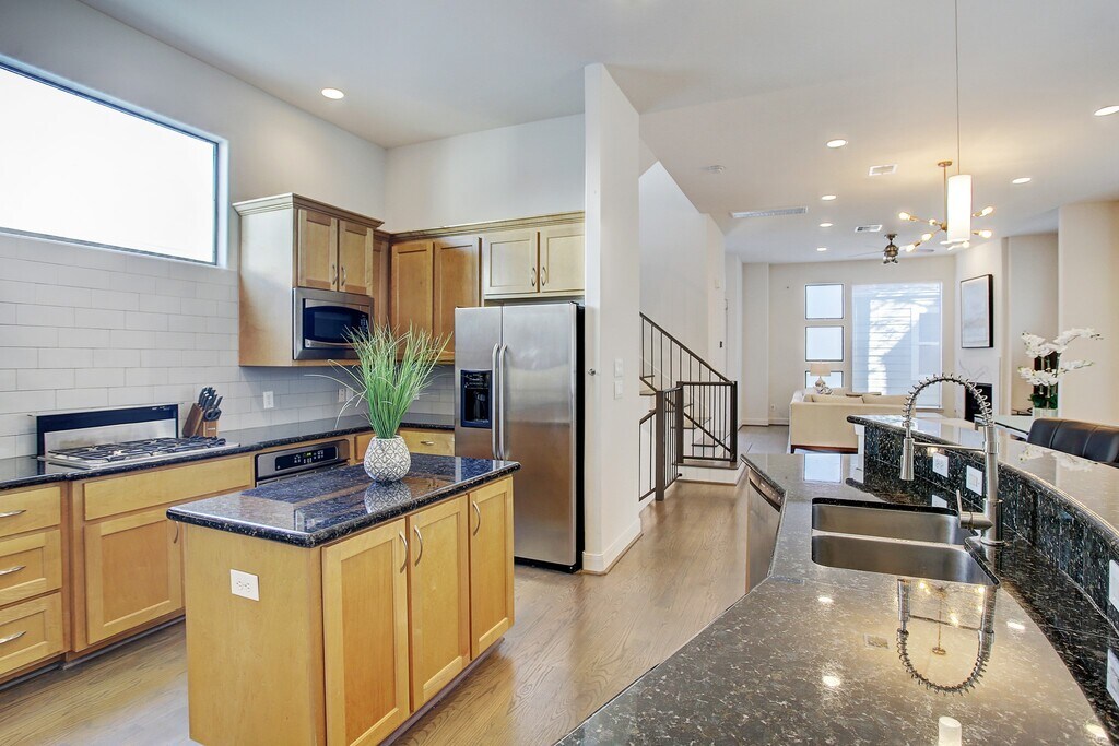 Fully furnished Contemporary recently renovated including Master shower with claw foot tub,Italian porcelain tile,New hardwoods in Master bedroom,closet and 2nd bedroom,closet. All existing hardwood were refinished 2nd level. New Italian porcelain tile installed 1st floor entryway,3rd bedroom including new shower and granite bath counter. New LED lights installed with Fresh paint throughout. Great location by Memorial Park & walking distance to the Washington strip! Beautiful modern stucco ext. w/large living areas nestled in back with great light from 3 sides of house. Expansive 2nd level living room 11' ceilings w/fireplace and open kitchen w/SS GE appliances & island bar including balcony. 3rd floor has a 12 foot ceiling master retreat w/room for sitting area & huge master bath and walk in closet. small outside side yard. WALK TO RESTAURANTS. MLS# 65704123