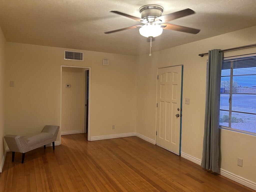 Super cute 1952 brick home near downtown Tucson! This charming property features two spacious bedrooms plus a small bonus room—perfect for a home office, workout room, or optional bedroom. Enjoy beautiful wood floors, ceramic tile, and fresh interior paint throughout. The kitchen offers like-new cabinets and appliances, and the home includes central air conditioning for year-round comfort. A dedicated laundry room comes equipped with a washer and dryer. The fully fenced front and back yard provides privacy, while the front porch welcomes the morning sunrise, and the shaded back porch is ideal for enjoying Tucson's beautiful sunsets. Conveniently located near downtown, close to a bus route, and just one mile from the University of Arizona. No pets. Tenant pays all utilities. A $72 fee is required to apply for anyone living in the home, 18 years and older. (includes $32 credit/background and $40 application verification) Security Deposit $2,445 (includes $200 non-refundable management close-out fee). All information is deemed reliable but not guaranteed. GS Benchmark Real Estate complies fully with all federal, state, and local Fair Housing laws.