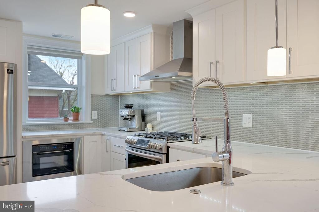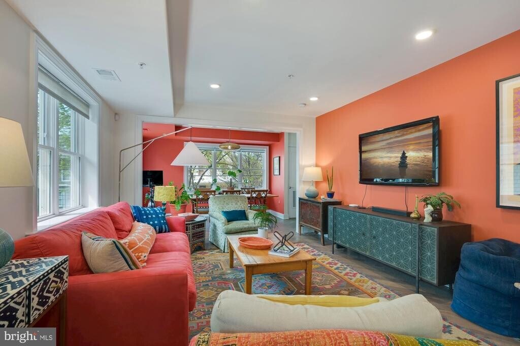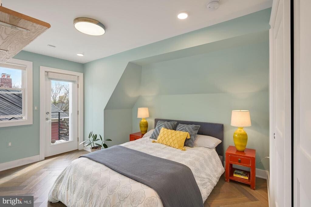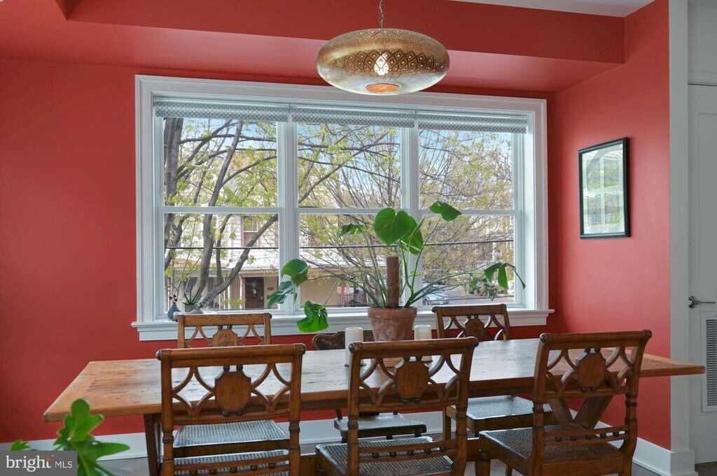 Spacious 3BR Penthouse w/ Private Roof Deck - Flexible Lease Terms & Utilities Included Occupying the top two levels of a recently renovated rowhome, this 3-bedroom, 2.5-bath penthouse condo offers expansive living space, abundant natural light, and a layout perfect for relaxing or entertaining. Enjoy hardwood floors throughout, freshly painted walls, and a seamless open-concept main level with a generous dining area framed by bay windows and a marble-topped kitchen with stainless steel appliances, an island with stools, and ample storage. The partially furnished living room is open to discussion, depending on your preferences. Step outside to your own private deck off the kitchen for morning coffee, or take in sunset views on the 395 sq ft roof deck, complete with a dining set, lounge chair, umbrella, and room for yoga or hosting friends. Additional conveniences include a half bath on the main level, a shared coat closet, and a stacked washer/dryer unit.