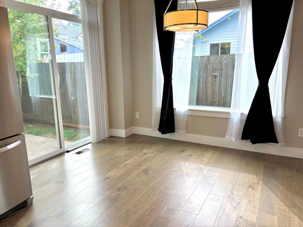 This approximately 1621 sq. ft., 2-level, 3 bedroom, 1.5 bath home in St. Johns is available for move in on 11/7/2025 and features the following amenities: -Main floor with laminate hardwood throughout, high ceilings, and fireplace in living area - Large, open living room with large windows - Full kitchen with quartz countertops, breakfast bar and stainless steel appliances including refrigerator, built in microwave above gas range, dishwasher, and garbage disposal - Dining area next to kitchen with sliding door to concrete patio in the fenced back yard - Attached garage entry in main level hallway, next to 1/2 bath - Main floor also features a coat closet for additional storage - Carpeted stairs and throughout upper level, bathrooms tiled - Main bedroom to the right of stairs features 2-double door closets, and high ceilings complete with a ceiling fan - Main bedroom also includes an ensuite bathroom featuring large soaking tub, and separate walk-in shower with a glass enclosure - Two additional bedrooms at other end of hall are spacious and well lit with large windows, and include double door closets - Next to the bedrooms is a shared full bath with enclosed tub with a vanity - Convenient Laundry room on second level with spacious washer and dryer - Gas Furnace, central heat and central A/C Located just 1/2 a mile from historic downtown St. Johns with all the amenities you could ask for, and convenient location between Cathedral Park and Peninsula Park - Tenant Pays: Electric, Gas, Water/ Sewer, and Internet - Owner Pays Garbage + Landscaping Showings by appointment only. Text or email Portland Rental Properties for more info or to schedule a viewing at or Leasing@ To view all of our current listings, please visit our website: Application period is open now. This unit does not qualify as a Type A "Accessible Dwelling Unit" pursuant to the Oregon Structural Building Code and ICC A117.1. $40 screening fee per financially responsible adult